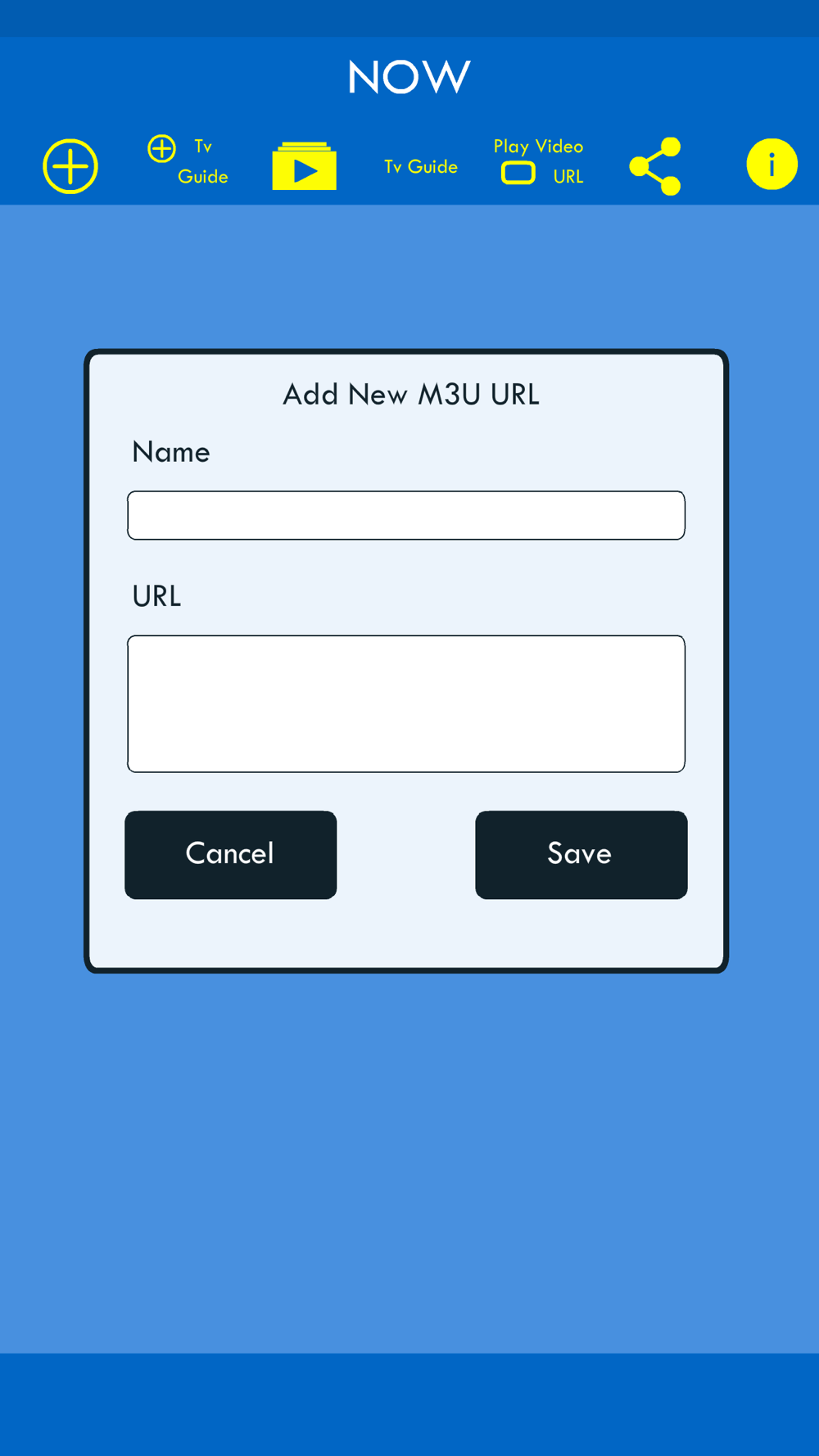 - First you need to input your M3U Url and name for your Playlist. (You can get it from your provider or free from web).