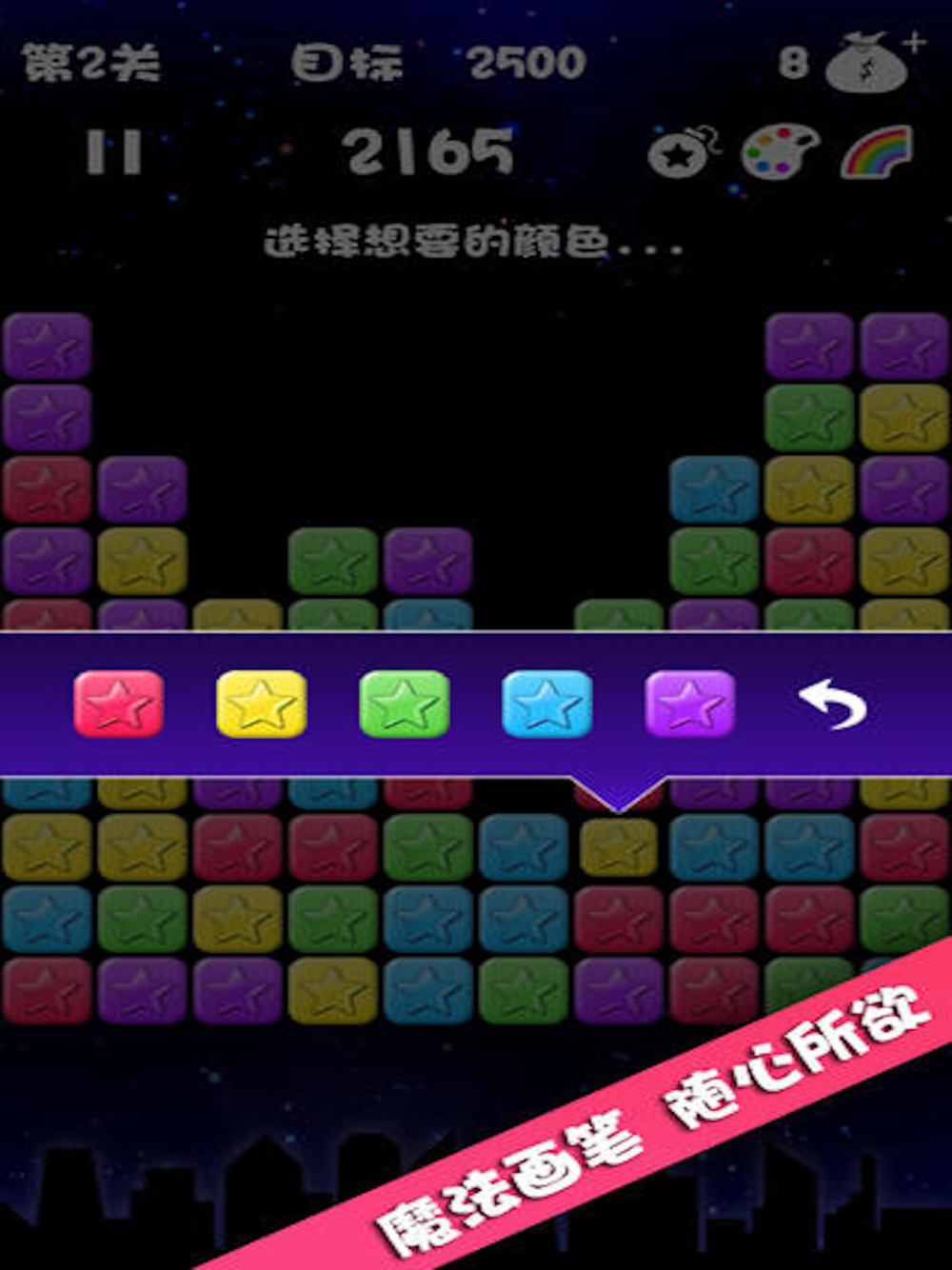 保持经典核心玩法,重新设计界面,界面更加简洁清爽,精美的风格、丰富有趣的音效、畅快淋漓的手感,带给千万玩家最高品质的消灭星星的体验!