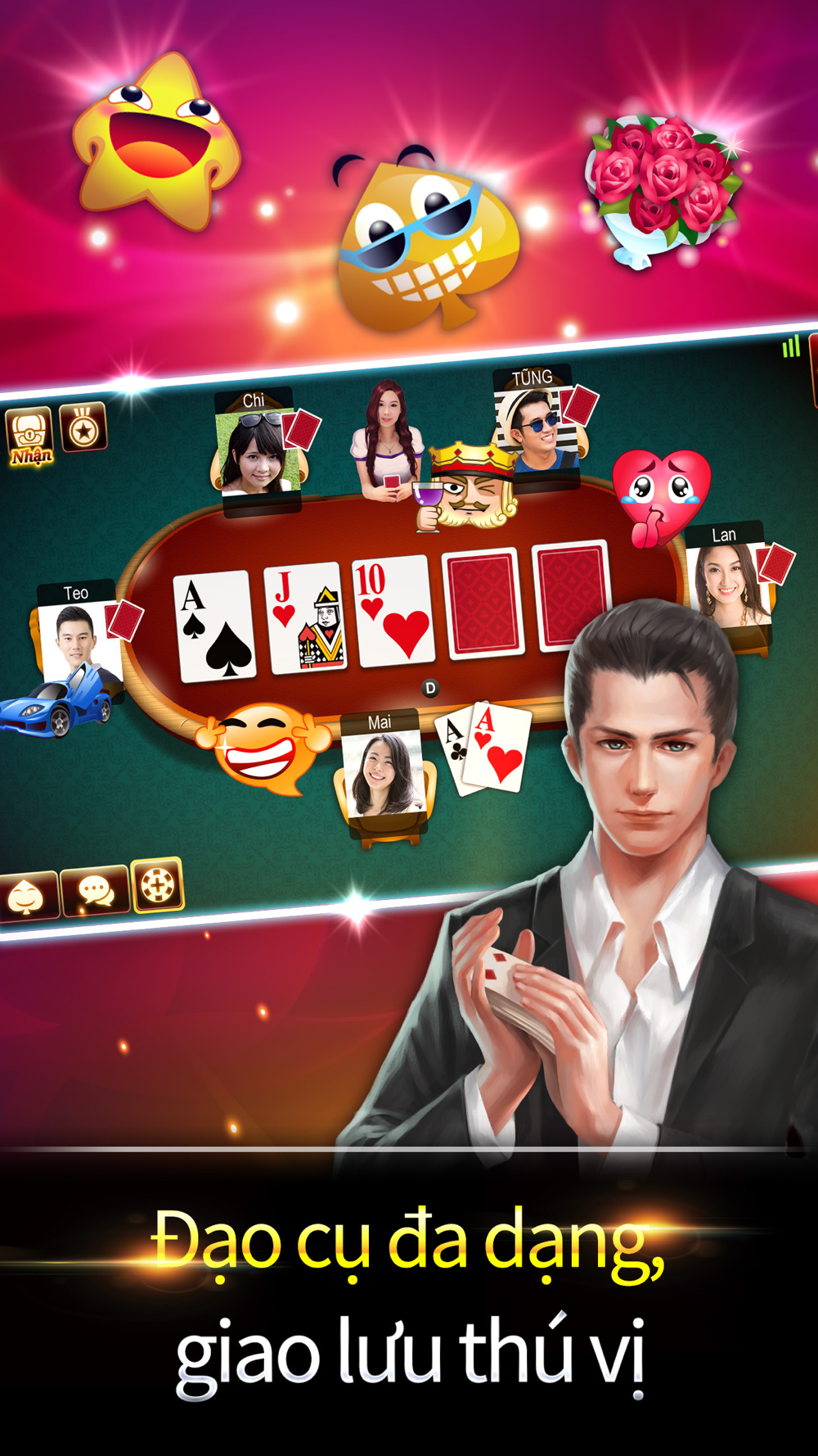 。 Biểu tượng cảm xúc phong phú, chơi game Poker càng vui hơn.