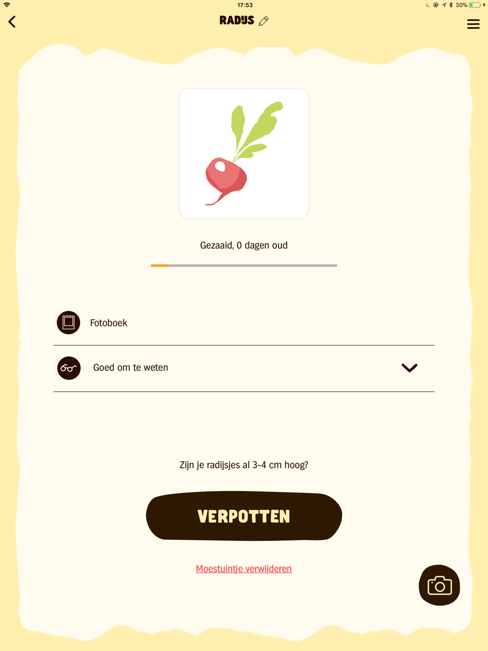 Daarnaast kun je de groei van je moestuintjes nauwkeurig bijhouden en vastleggen in het fotoboek en delen met vrienden of op social media.