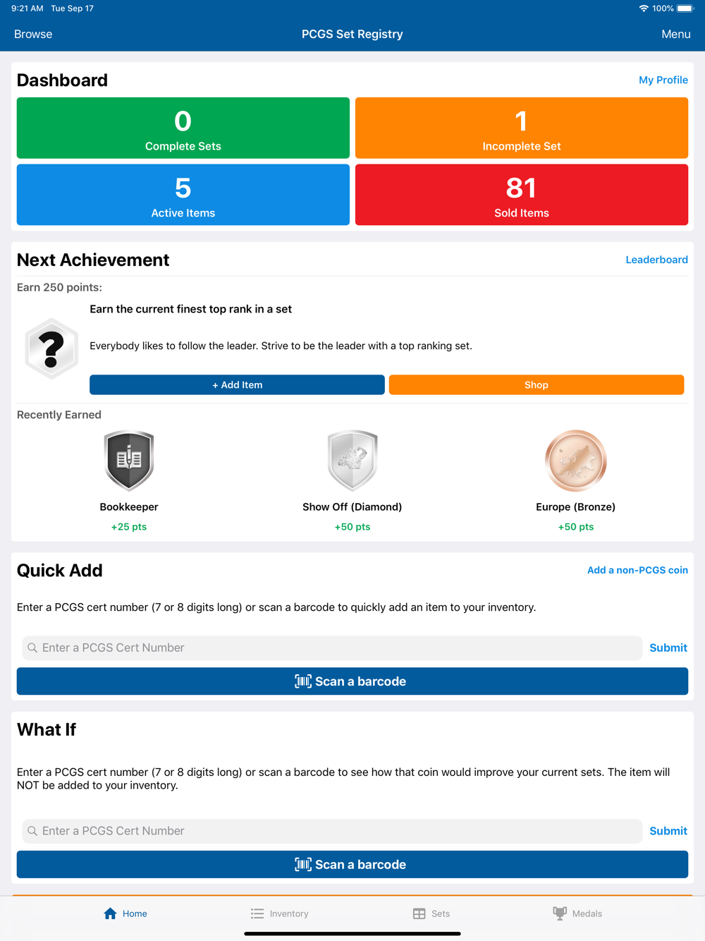 · Scan a PCGS-graded coin’s barcode to determine whether or not it will upgrade your set using the “What If?” function