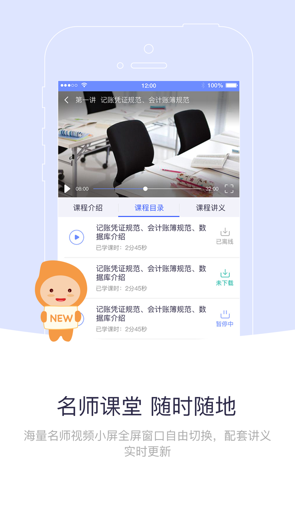 离线学习,无须流量,不用暂停即可操作离线,更能浏览本课全部课件,扁平化操作高效易用