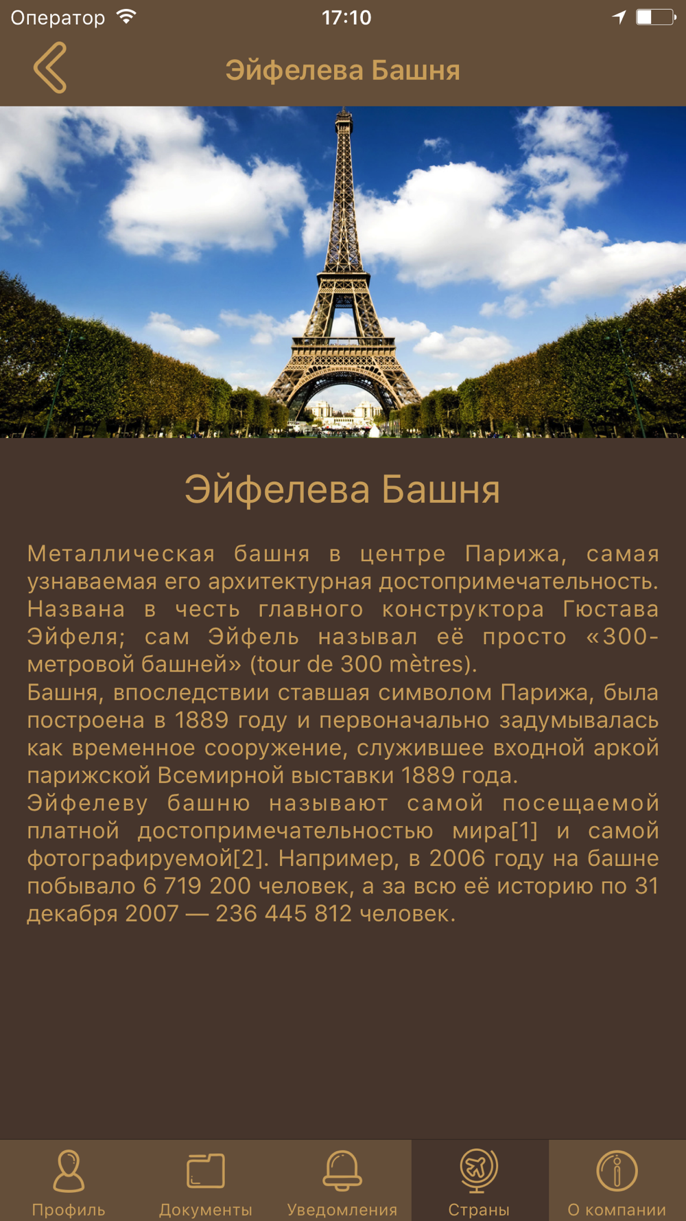 - смотреть информацию о стране пребывания, достопримечательностях и местах, обязательных к посещению