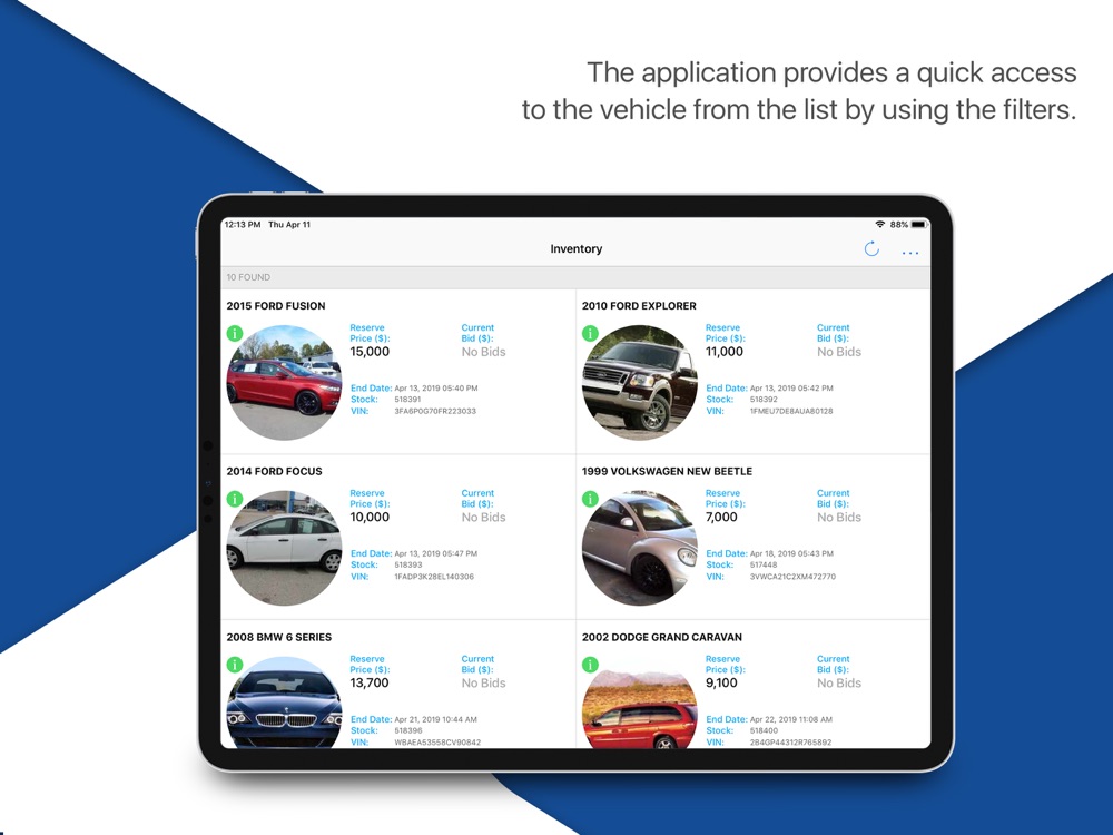 Autoxloo’s SimCasts MPS application allows sellers to simulcast a high quality video of their vehicles at the auction. Presenters can quickly find a car for broadcasting from the list of inventory by using the filters. They have a possibility to adjust their video presentations on customer’s demand: zoom in or out any car details or areas, show the interior and detalize the exterior, etc. Several sellers can broadcast video streams for one vehicle at the same time. Subscribers can view multiple simulcasts at a time and interact with the presenters via text messages. For the watcher’s comfort a seller is able to adjust the camera focus and the flash to improve the stream quality. The video can also be muted. A presenter can quickly switch to the next vehicle with one tap.