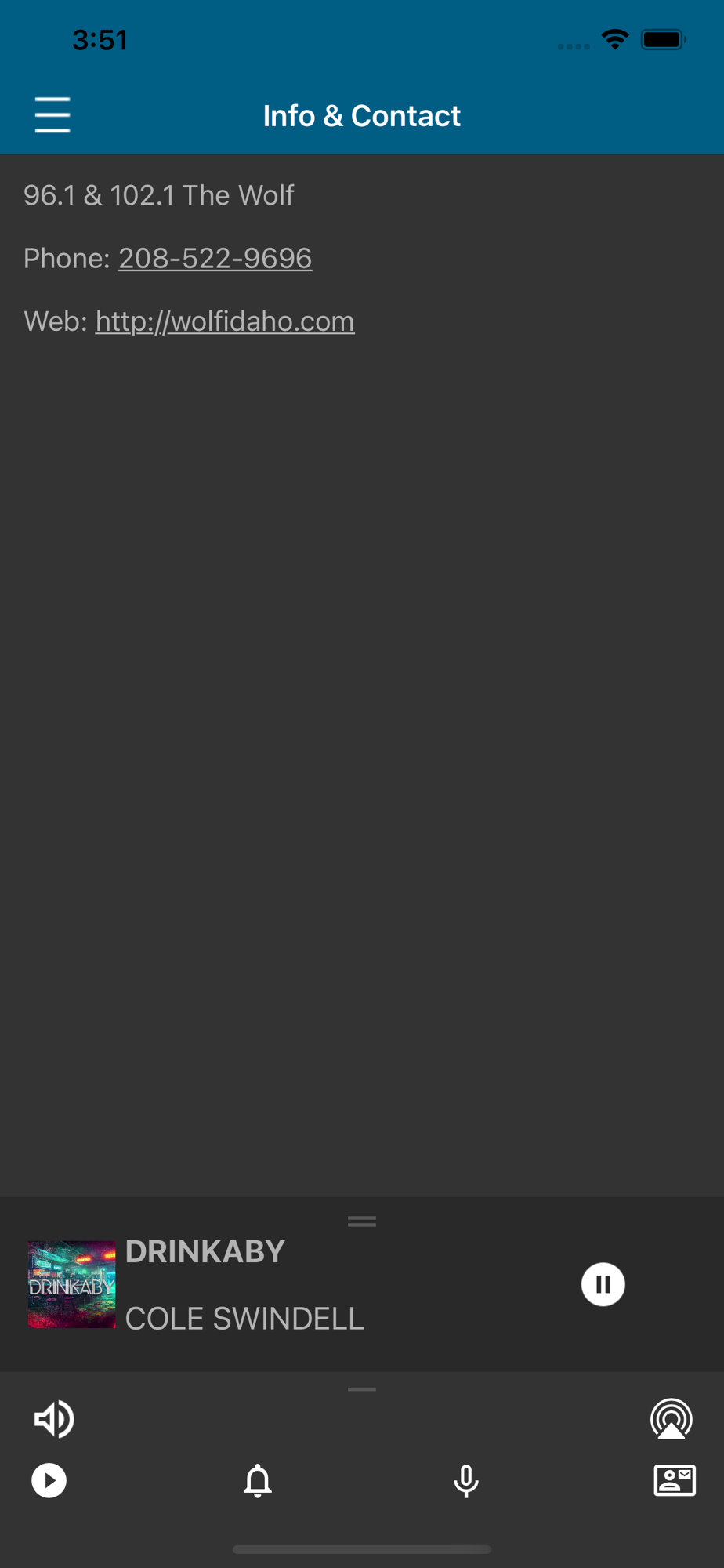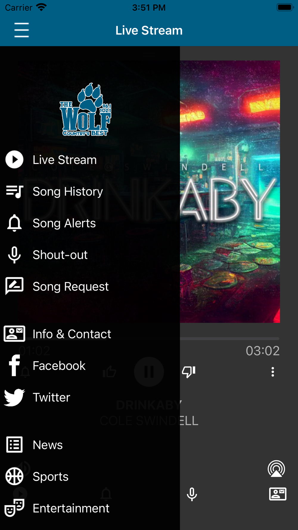96.1 & 102.1 The Wolf is Country's Best for East Idaho and Western Wyoming! See current and recently played songs and up to date station and local news on a single screen. - Wake up to your favorite station with our alarm clock. - Fall asleep while listening to your favorite station - Real time weather for where you are. - Share our app via Facebook, Twitter, and e-mail.