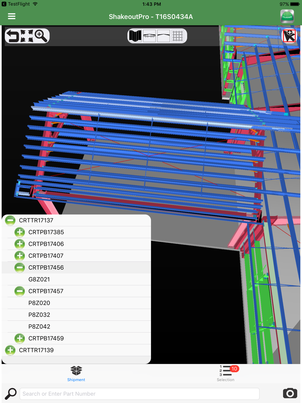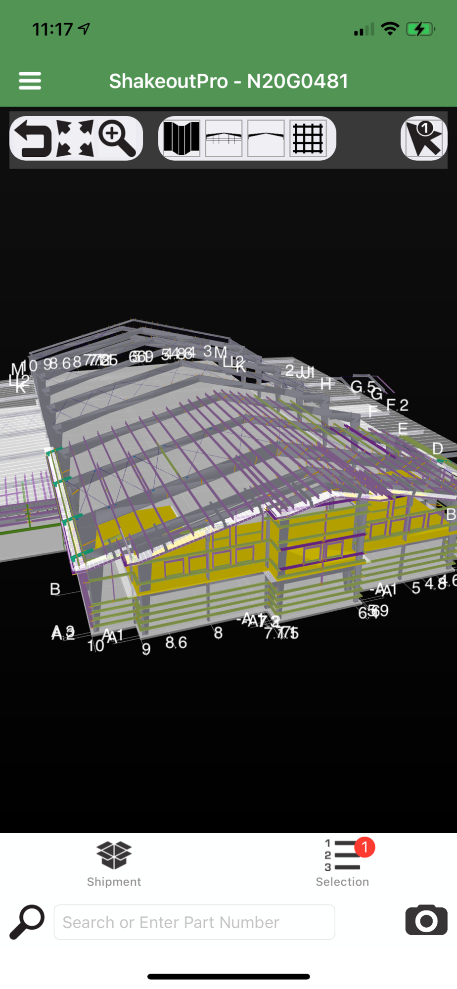 ShakeoutPro™ is a unique mobile application specifically designed to help Builders and Erectors save time unloading and staging steel at the job site. This easy-to-use, powerfully robust app takes only minutes to master and requires no additional equipment - all you need is a smart device. Simply use the camera on your phone or tablet to capture the barcode on a part. It’s then highlighted on your project’s BIM model showing exactly where the part fits and helping you determine where to stage parts on the site for maximum efficiency.