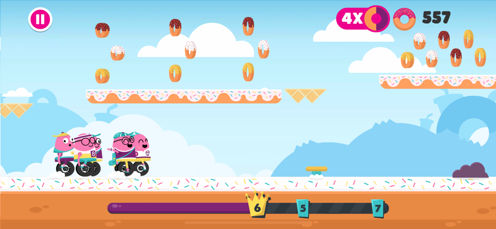 Pedal furiously through the Donut Kingdom, collecting as many donuts as you can. Collect magnets and speed boosts to power you up and grow your Warrior crew with milkshakes. But, beware of the jelly pits and ice-cream snow drifts!