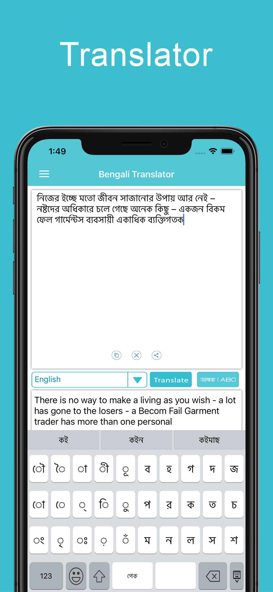 Bengali Translator app will allow you to translate message, story and you can share translated text to your friends and family bye Facebook, twitter and emails.