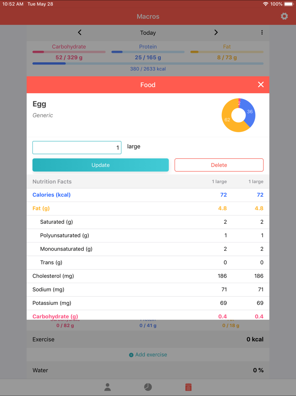 -Edit your caloric requirement and macronutrients, both in percentages and grams.
