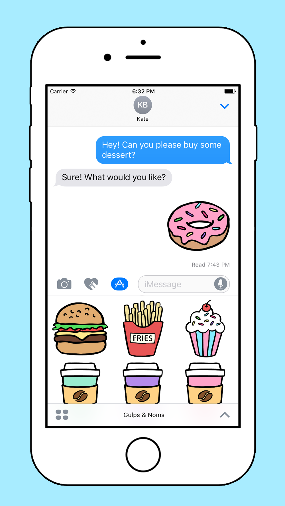 Turn your conversations into gastronomic adventures with Gulps & Noms sticker pack for iMessage.