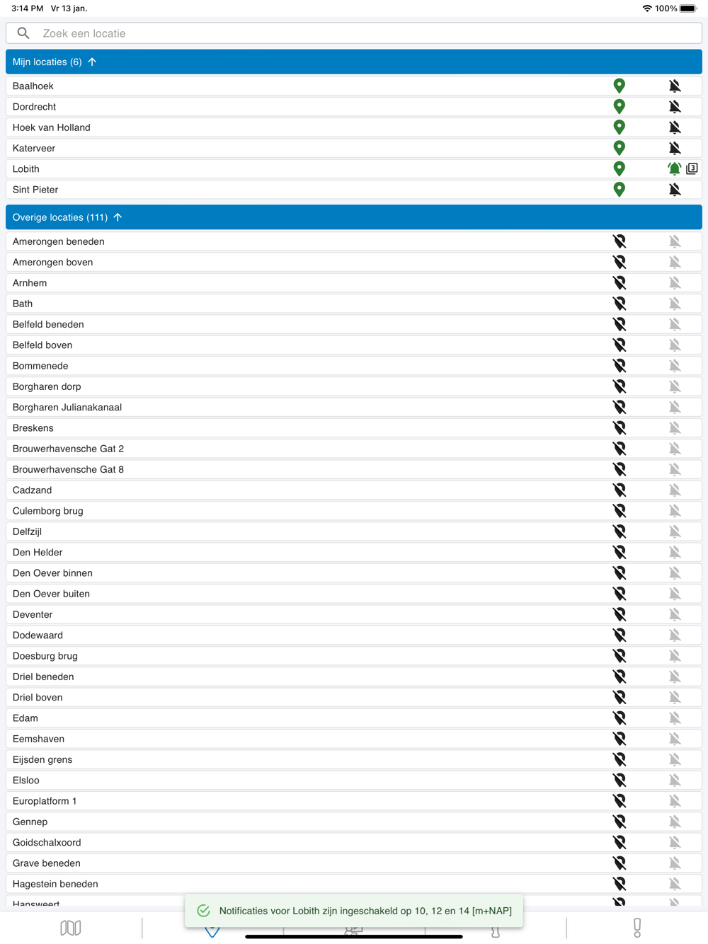 Met de app MijnHoogwaterstanden Pro kunt u informatie en automatische alarmering over actuele en verwachte waterstanden ontvangen voor verschillende locaties in Nederland. In deze pro versie kunt u persoonlijke alarm niveaus voor één of meerdere locaties instellen. We maken hierbij gebruik van metingen en waterstandsverwachtingen zoals deze door Rijkswaterstaat worden opgesteld en beschikbaar worden gesteld via een open data portaal.