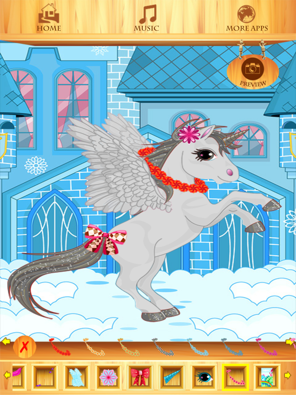 If you love popular dress up games, and if you are crazy about cute little unicorns, then you are on right place. We give maximum to prepare for you best dress up games with mythical creatures. You are very welcome to download for free Dress Up Unicorn app, and play the game on your iPhone™ or iPad™ as long as you wish. You can create your beautiful virtual unicorn, and give him incredible new look with fantastic colorful tails, flowers, horns and haircuts.