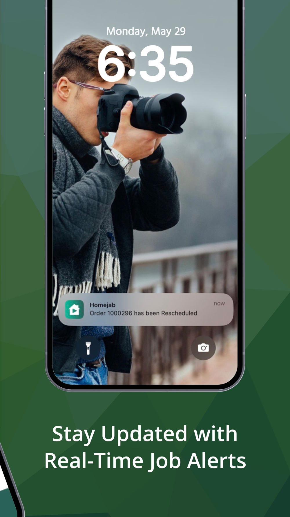 As soon as orders are submitted, they are allocated to the photographers via HomeJab. Our intuitive app notifies photographers of new assignments, showcasing key details such as customer contact info, property address, service package specifics, payment details, start date & time, location map, and special requests. It also allows photographers to accept or decline jobs at their convenience.