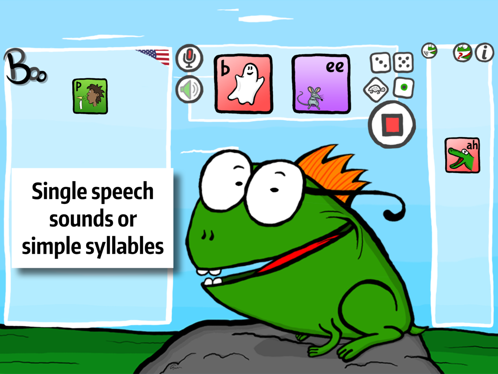 Boo helps children practice speech sounds that they need to improve. He is designed to entice spontaneous repetition of individual speech sounds and simple syllables. At the same time, he enforces helpful phonological awareness, by showing what actions happen in the mouth during articulation.