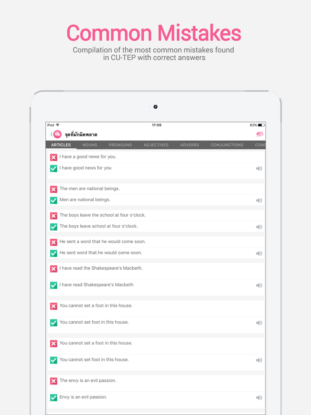 ผู้ใช้ CU-TEP Practice Test จะได้สัมผัสประสบการณ์ใหม่ในการเตรียมสอบ CU-TEP รับรองได้ว่าคุณจะได้คะแนนที่สูงขึ้นในเวลาอันสั้น คุณสามารถเรียนรู้ภาษาอังกฤษในชีวิตประจำวัน ภายใต้แนวคิดเรียนภาษาอังกฤษได้ทุกที่ทุกเวลา แล้วคุณจะเก่งขึ้นแน่นอน คะแนนสอบของคุณจะสูงขึ้น การเรียนภาษาอังกฤษจะง่ายขึ้น