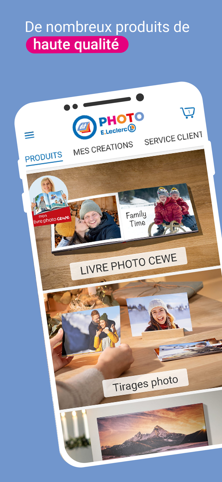 Avec l'application PHOTO E.Leclerc, imprimez vos plus belles photos, créez des albums photo et personnalisez de nombreux cadeaux (toiles photo, posters, décos murales, cartes de vœux, mugs, etc.). Faites-vous livrer à domicile ou dans votre magasin E.Leclerc le plus proche. C'est pratique, rapide et toujours à prix E.Leclerc.