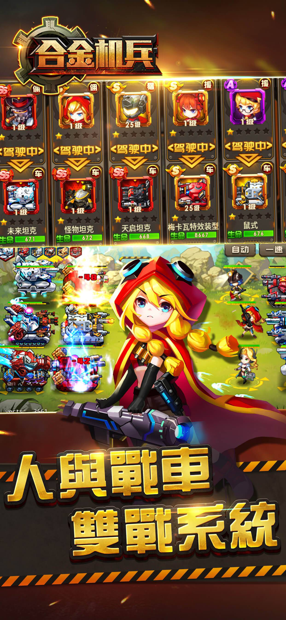 1、人與戰車的雙戰系統,自由搭配組合,坐上戰車,馳騁疆場!