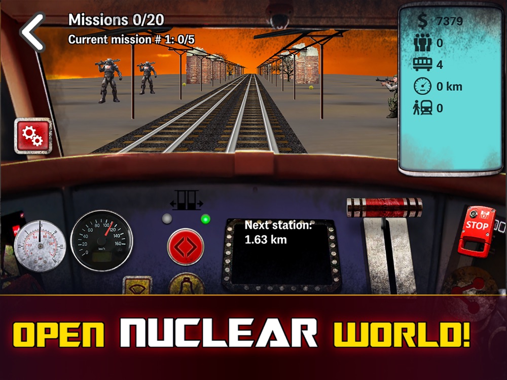 Drive train in nuclear war and carry passengers! Train simulator with view from driver's cab! Driving train with nuclear reactor and transport passengers like machinist! Ride on train on railroad in nuclear apocalypse as driver of atomic train! Transport passengers from station to station in safety! Control nuclear train from the driver`s cab! Gain speed and brake at stations, let out and takes passengers, escaping from radiation! Upgrade train to increase speed and transport more people! Railway awaits! Feel yourself a machinist!