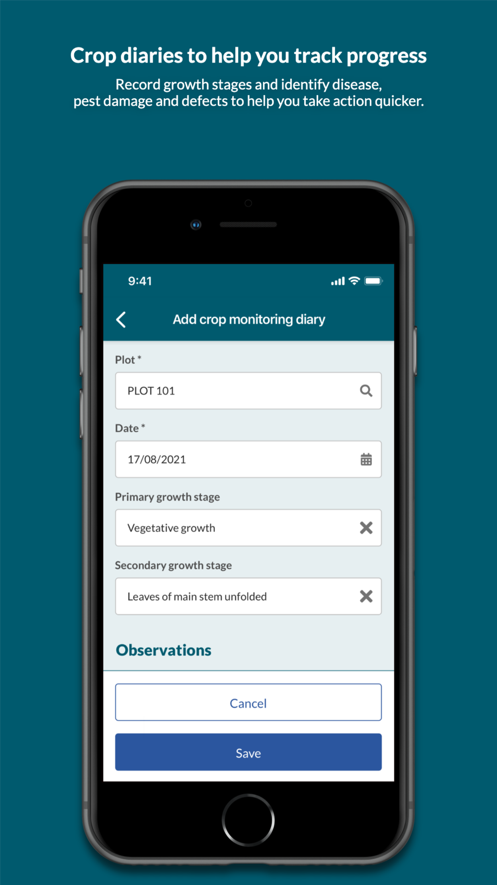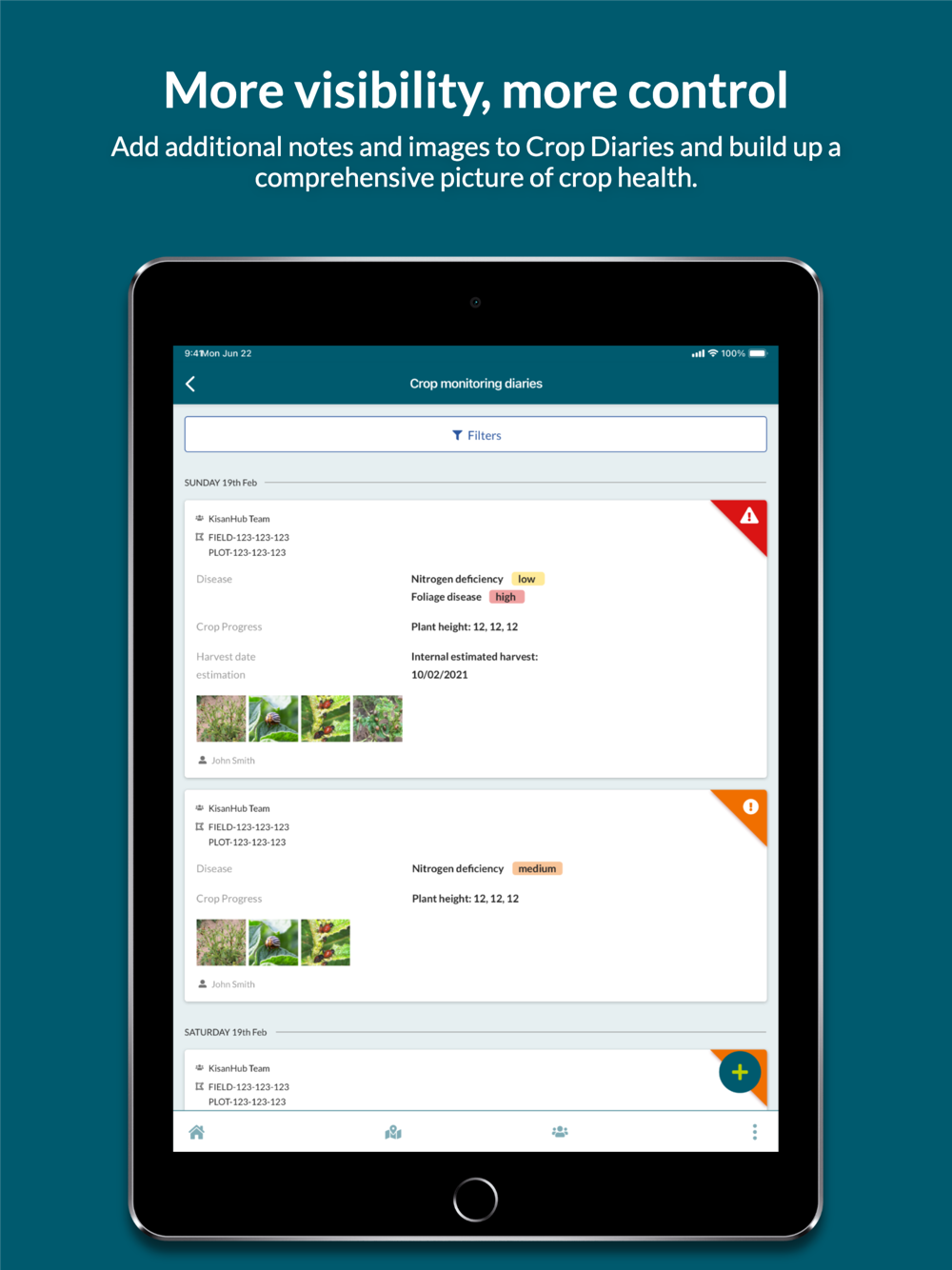 Monitor: live updates, alerts, imagery and insights to track your crops progress.