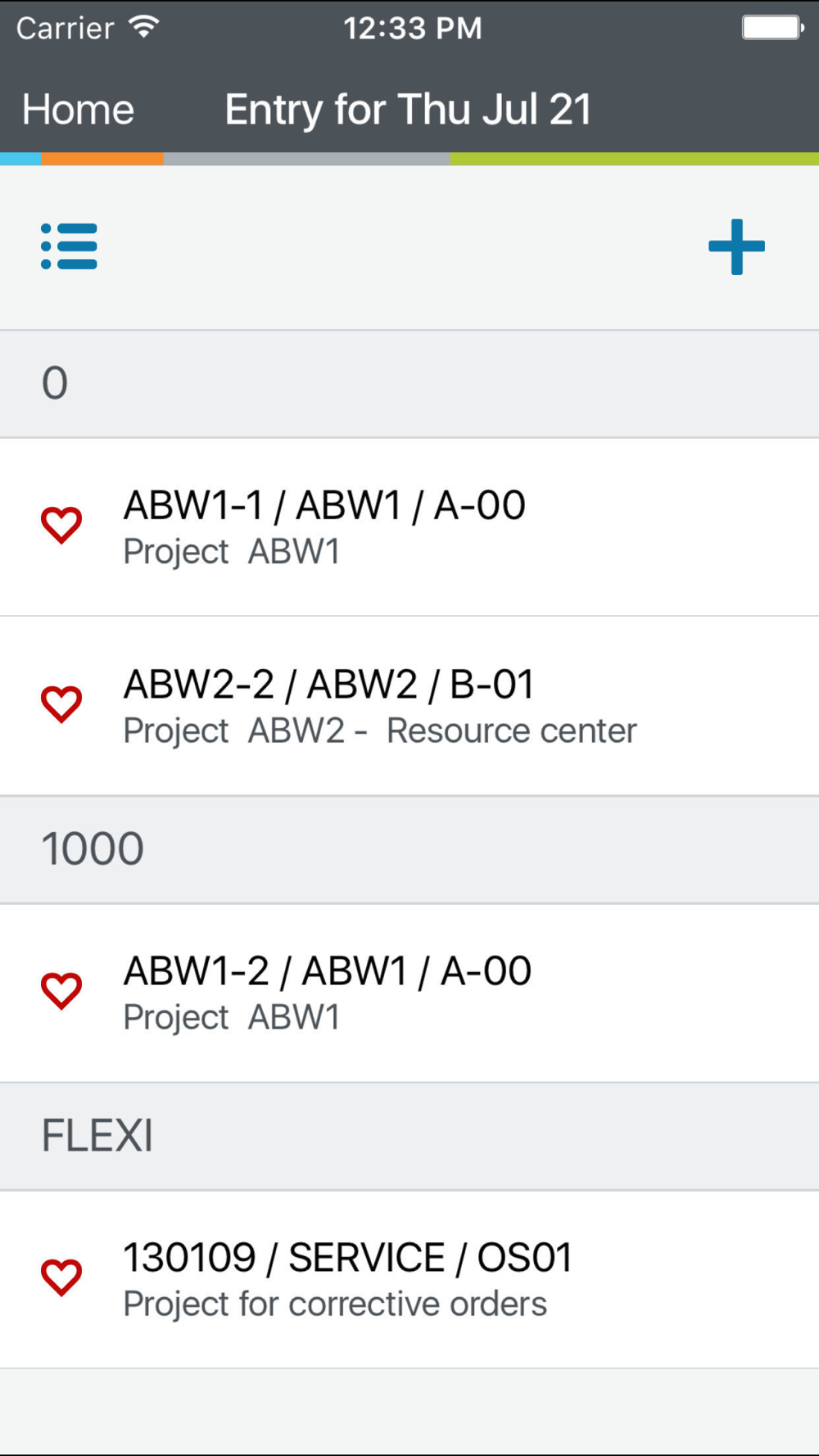 - A recently used combination of project, work order, activity etc. from a list can be selected