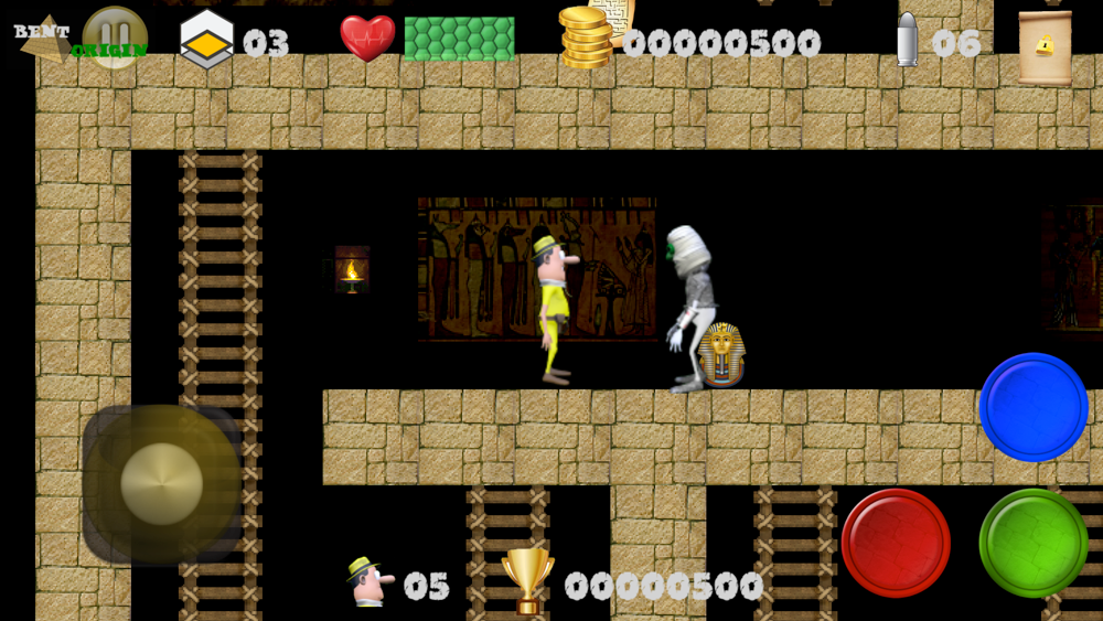 Unfortunately iFred is also very well-groomed and end up in trouble. You will have to get out of the various sections of each pyramid by avoiding being killed by monsters that populate the environments (mummies, bats, drops of acid, mice, geckos, ...).
