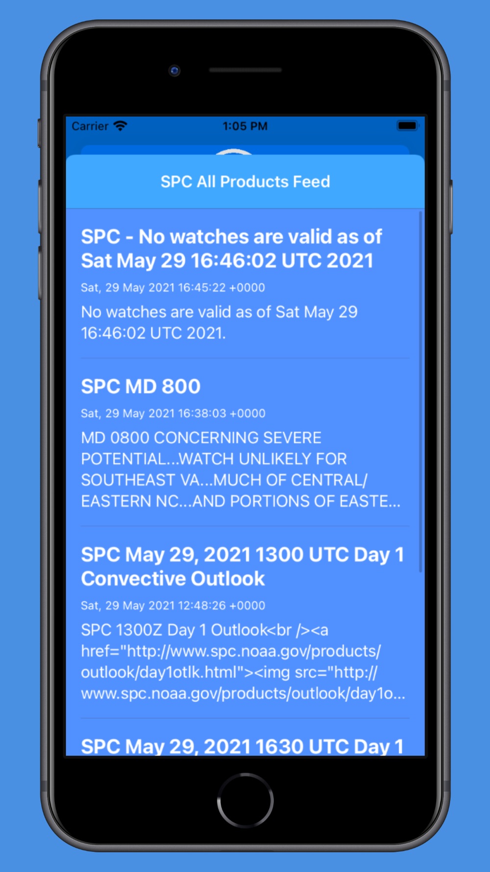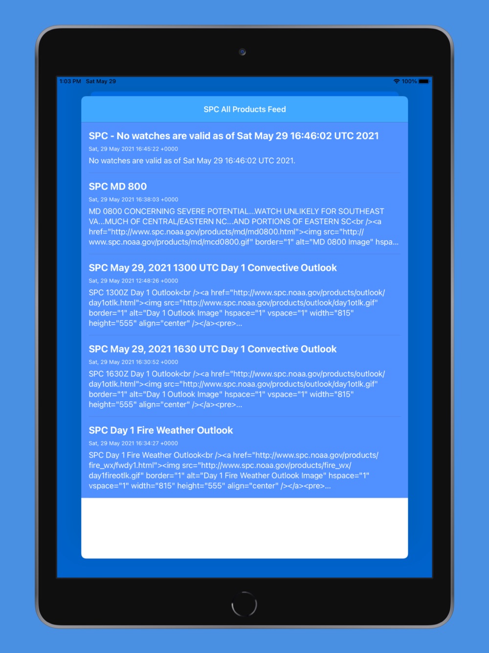 feeds through the app to view Mesoscale Discussions, Tornado and Severe