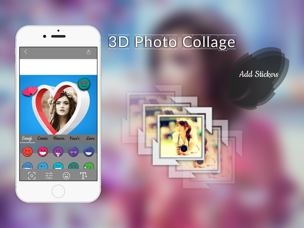 3D Photo Collage Editor is the awesome collage maker that makes you photos with beautiful and amazing 3D collages. Combine ordinary photos into fabulous & amazing 3d photo collages. 3D Collage Maker is a simple and easy to use app, just select frame and picture and get a whole new 3D Picture. you can decorate your pic by fantastic 3D effect and frames, adding cool text with colorful fonts & stickers.