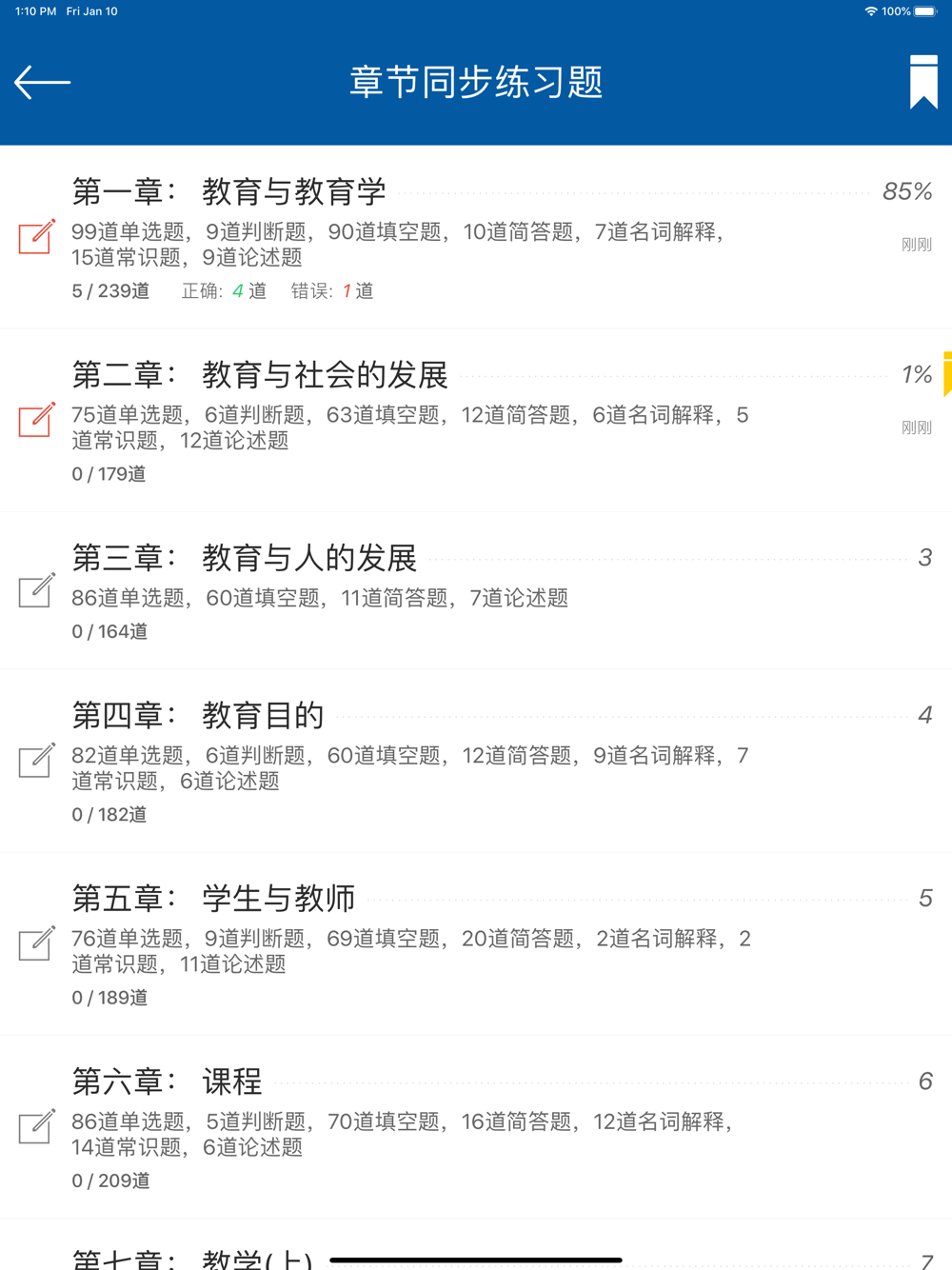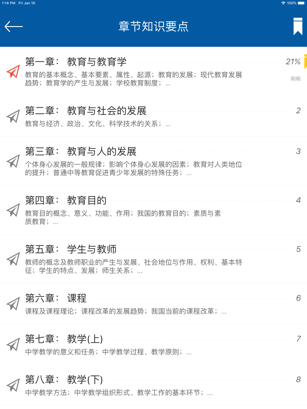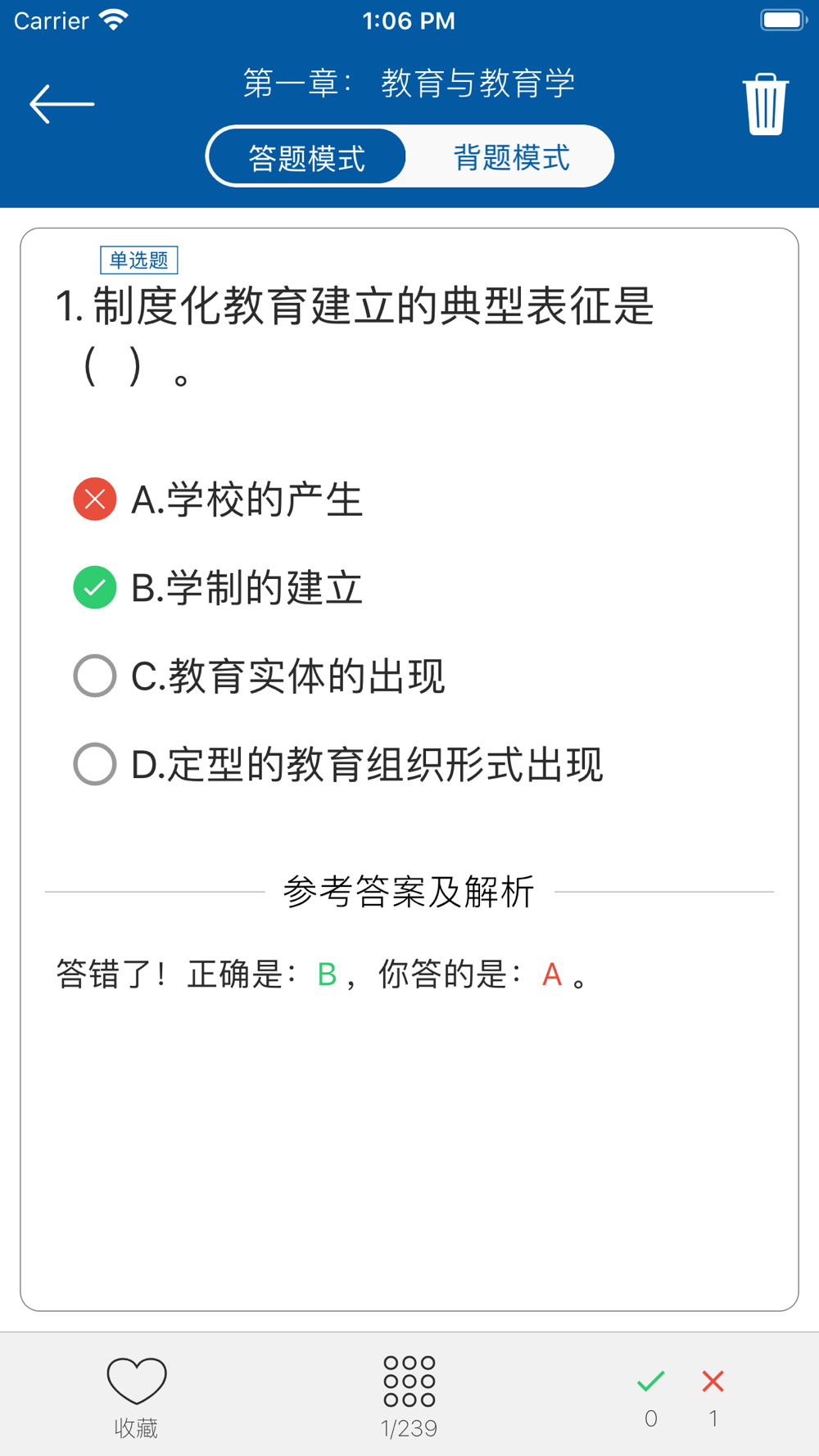 一、教育学章节同步练习题库及章节同步知识要点:模块清晰,有答题与背题两种模式,每道题通过卡片显示、试题目录,漂亮美观。 可以点击加入收藏、有答错提示、查看每题对错一目了然、清空重做本份章节、做题进度与时间、阅读进度、书签等功能。