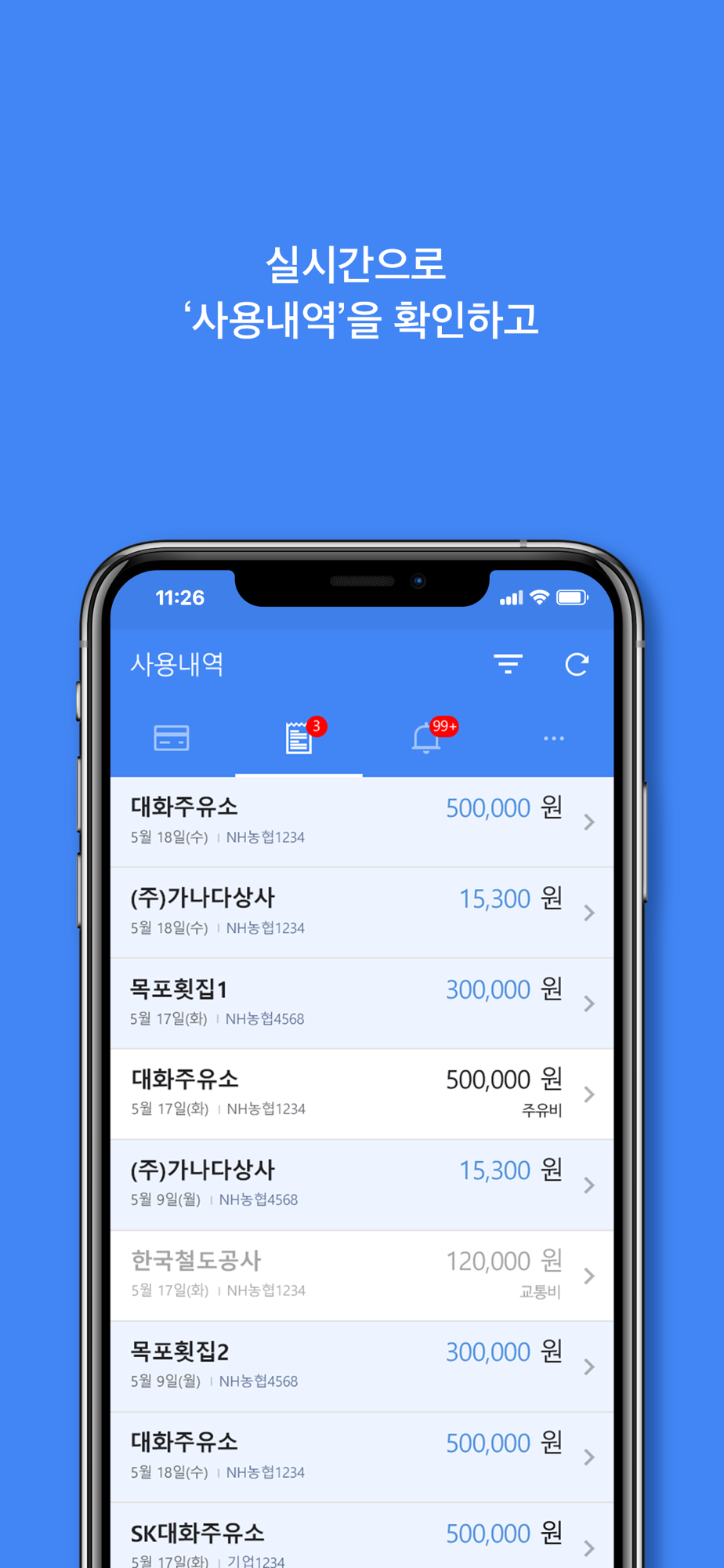 * 실시간으로 사용내역을 조회 할 수 있습니다.