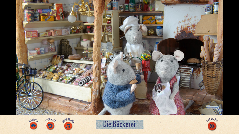 Julia rollt mit dem Roller die Treppe hinunter und landet im Krankenhaus, mit Sam lernst Du wie die unterschiedlichen Instrumente klingen und ihr könnt sogar zusammen Geige spielen. Du darfst mit zum Bäcker, der die herrlichen Plätzchen bakt und Du kannst Sam’s Auftritt im Theater besuchen. Auch is es möglich endlos durchs Mäusehaus zu streifen und dir alles ganz genau angucken.
