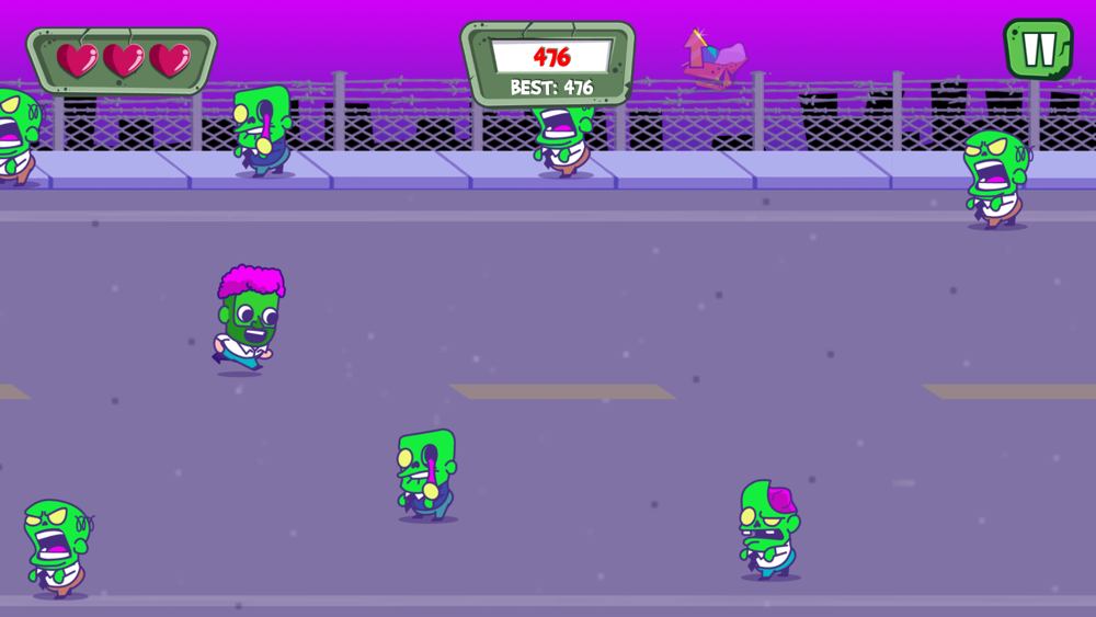 Note that you only have 3 lives. Drag the screen to the character avoid the zombies!