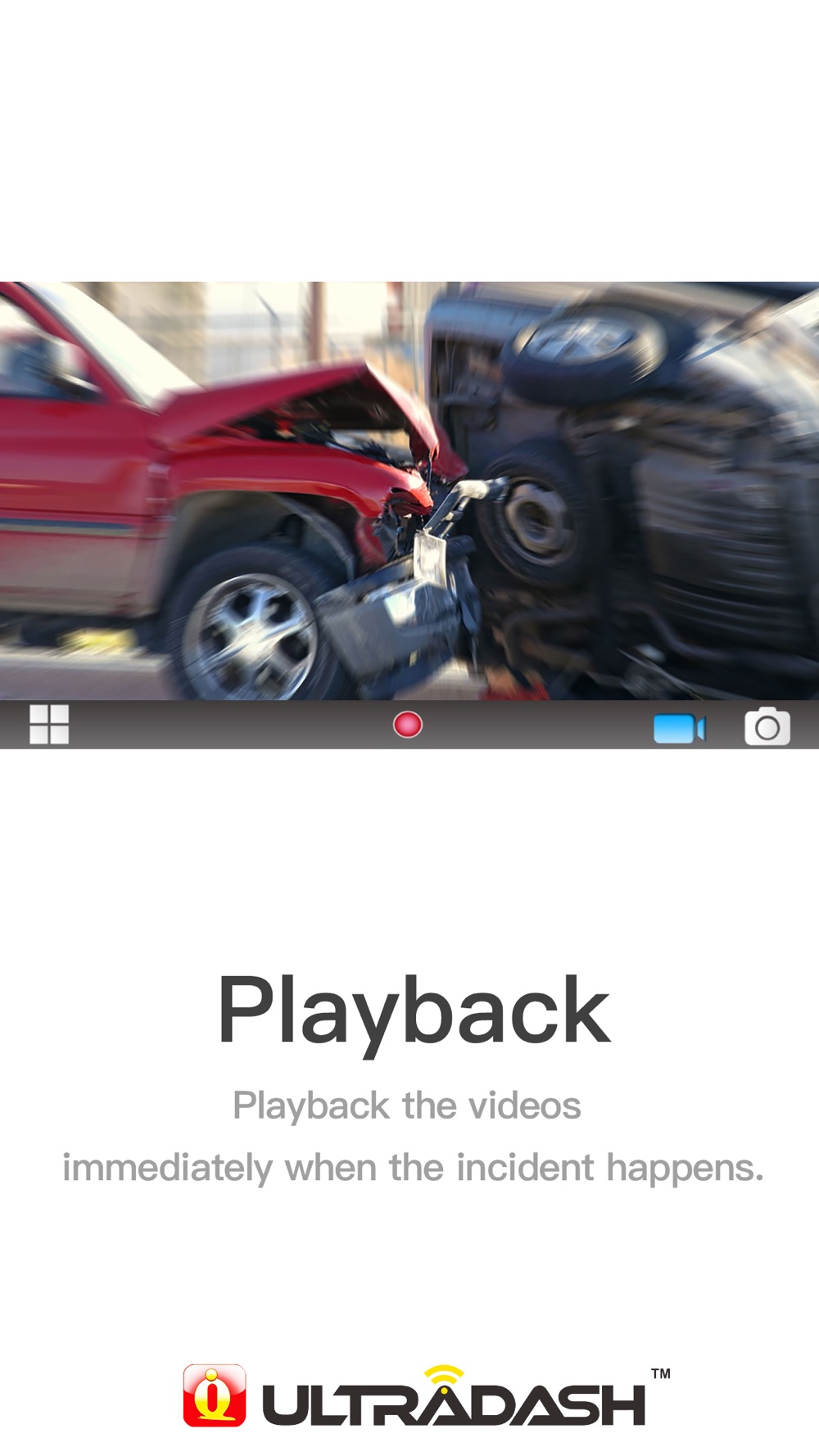 UltraDash Viewer is an application which is designed for the UltraDash dashcam’s Wi-Fi connection. We can easily use the application to preview the image which camera is shooting, remote control the settings and recording by our smart devices, and playback the videos immediately when the incident happens. In addition, we also add the social media sharing function into the iQ Viewer. Once we see anything special, what we need to do is open our iQ Viewer and send out the video clips and it is very useful for either entertainment or emergency. Don’t take chance, just purchase yourself an insurance, things happen and we will never know, and it is not only a protection for yourself, but also can be a solid evidence for helping innocent people or police to solve crime. Let’s build a better world together right away.