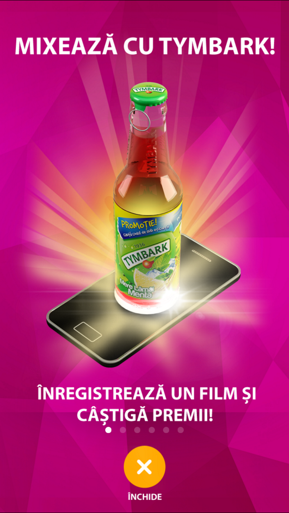 Aplicația Mixează cu Tymbark este modul de a antrena o petrecere bună! Descarcă aplicația Mixează cu Tymbark, alege muzica și distrează-te cu sticlele luminoase Tymbark Mix! Înregistrează un video, arată cum te distrezi și câștigă premii!