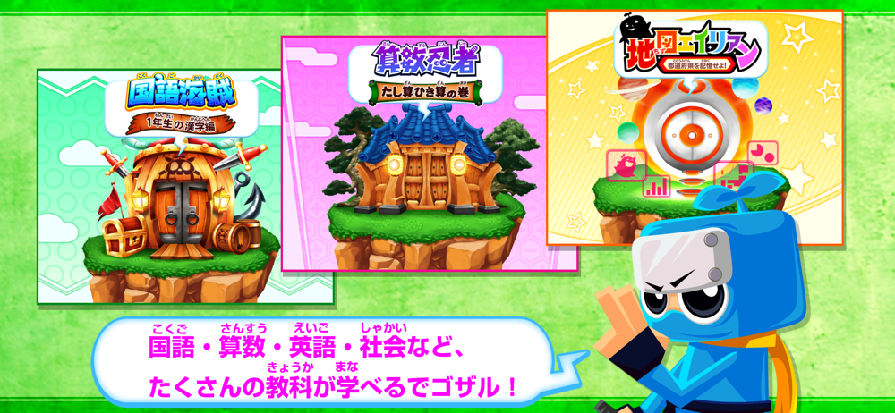 国語も算数も英語も社会もこれ1つで楽しく学べる!お子さんの大好きなゲームがそのまま勉強になるので、お父さん、お母さんに安心してダウンロードしていただける学習アプリです。