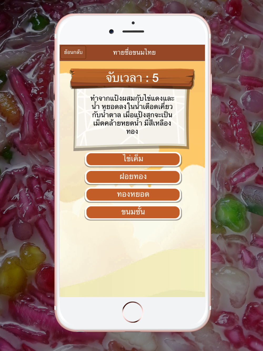 เกมนี้เป็นเกมล่าสุดอีกเกม ก่อนสงกรานต์ที่จะถึงนี้ ทางทีมงาน อินฟิ ได้สร้างขึ้น เพื่อมาให้เพื่อนๆ ได้เล่นสนุกๆ โดยทายชื่อขนมไทย ในอดีต จากคำใบ้ เช่น ขนมชั้น ขนมโก๋ ขนมหม้อแกง บัวลอย เป็นต้น อิอิ สนุกไหม ถ้าชอบเกมทาย ขนมไทยโบราณ นี้อย่างลืมช่วยโหวต 5 ดาวด้วยเน้อจ้า
