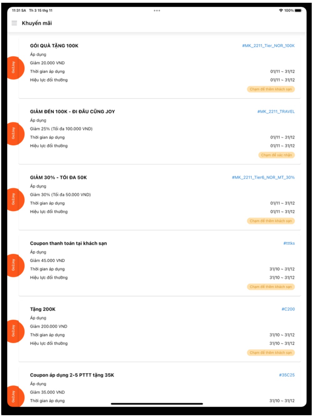 Go2Joy Partner là ứng dụng trên điện thoại di động dành cho các đối tác khách sạn của Go2Joy. Ứng dụng hỗ trợ chủ khách sạn theo dõi hoạt động và quản lý đặt phòng một cách dễ dàng, thuận tiện bằng cách liên tục cập nhật doanh thu và tình trạng đặt phòng tại khách sạn, thông báo ngay khi có khách giao dịch, các chức năng xác nhận đặt phòng, check-in thực hiện trực tiếp trên ứng dụng,