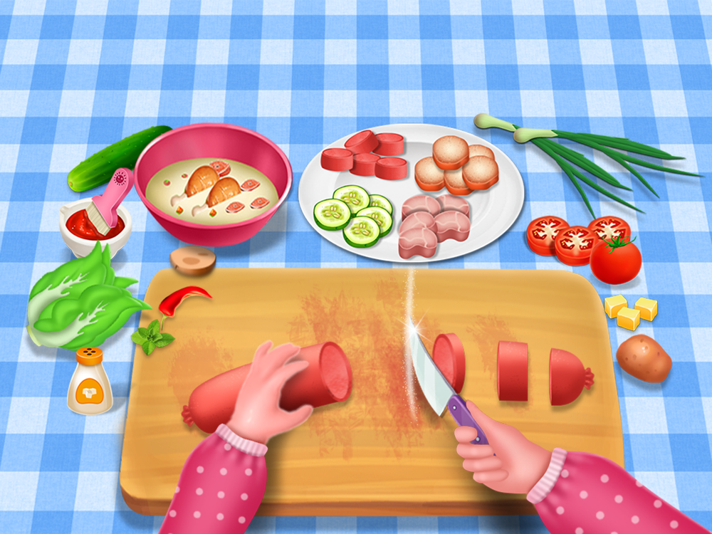 Welcome to the Aadhya's restaurant! Play this cooking kids game and learn to prepare various delicious food dishes!! So, without wasting any time letís start! Oh! Some customers have come to the Aadhya's restaurant and you need to help Aadhya to make all the food items which customers have ordered. The food items which you need to make are a barbecue, coco-cookie, spring roll, chicken soup, beef, coconut balls and much more delicious things. Help baby Aadhya to prepare all these food dishes and also learn how to make it while you are helping. So, spend some quality time with baby Aadhya and enjoy the process of cooking many, unique and delicious food dishes.