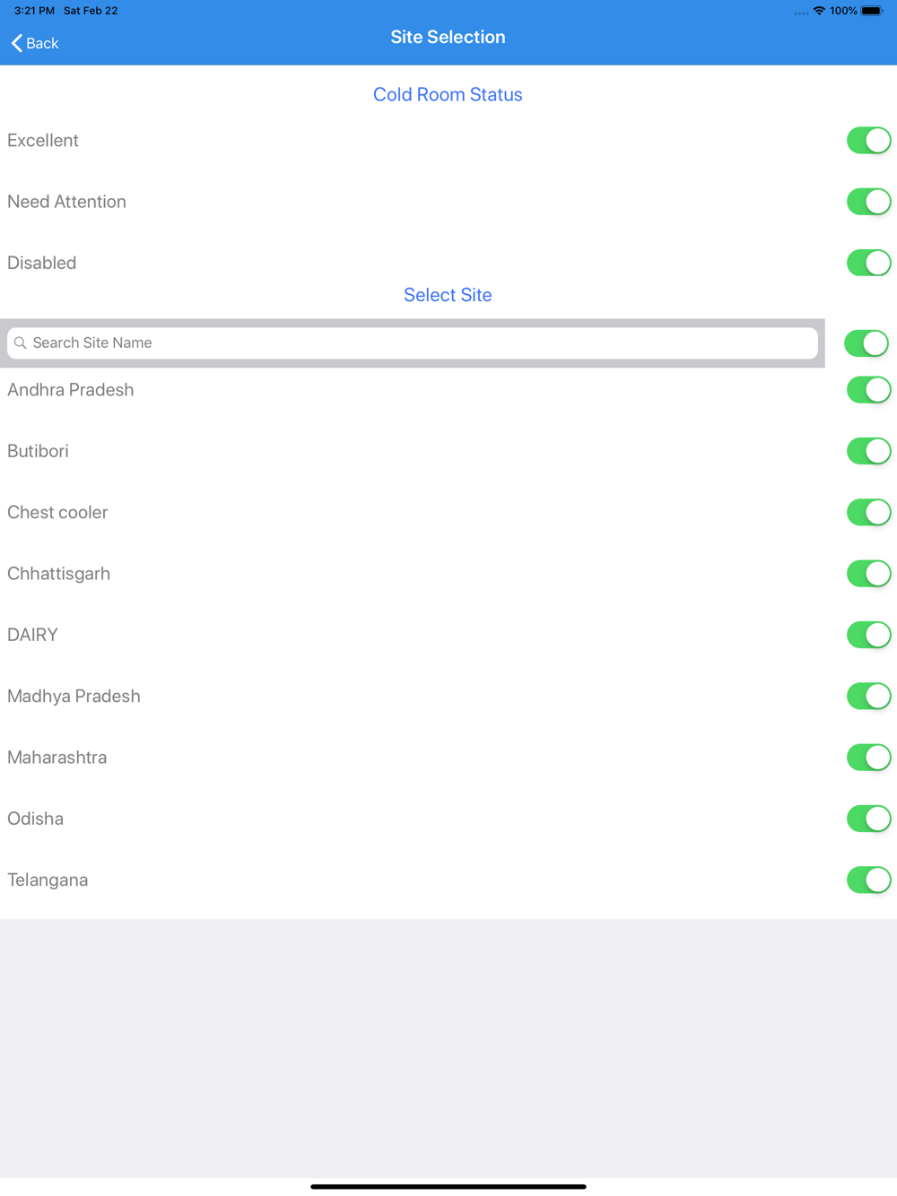 The cold room door open-close status, compressor, fan ON-OFF status is also available in the app.