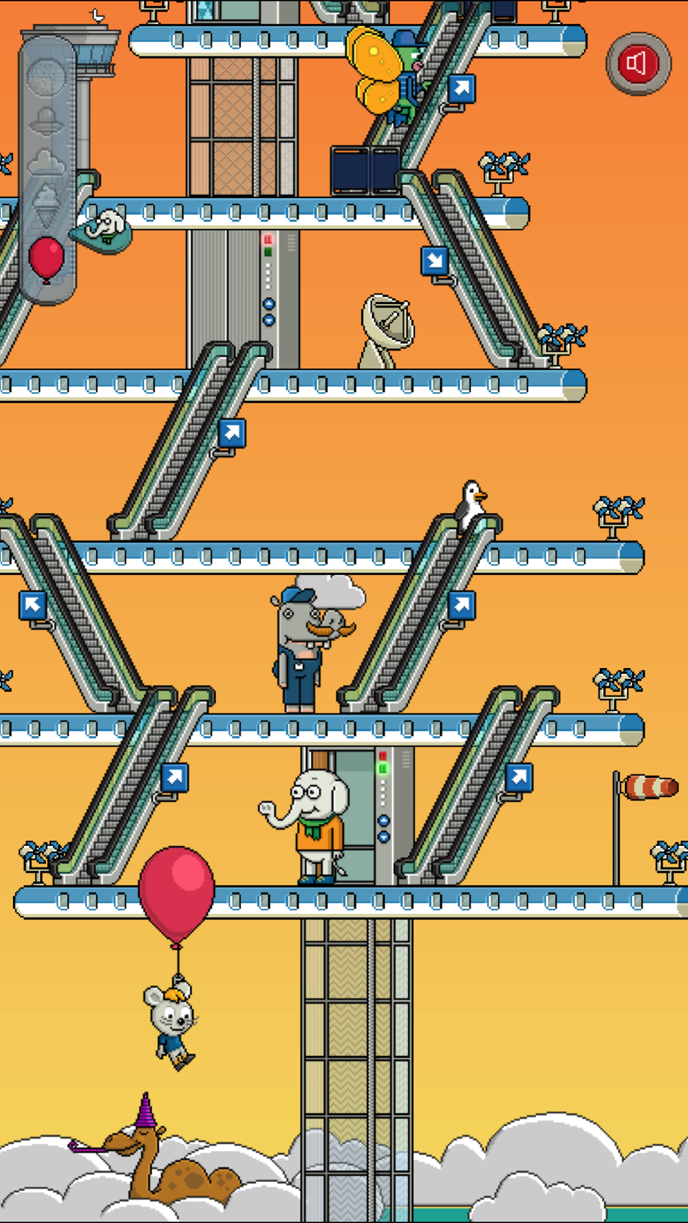 The game features KONE's safety mascots, Max the mouse and Bob the elephant. It begins with Max accidentally flying away with a balloon, leading Bob to go on a journey to find his friend by exploring a tall building with the help of elevators and escalators. The adventure-filled game is intended for children aged 4 to 10.
