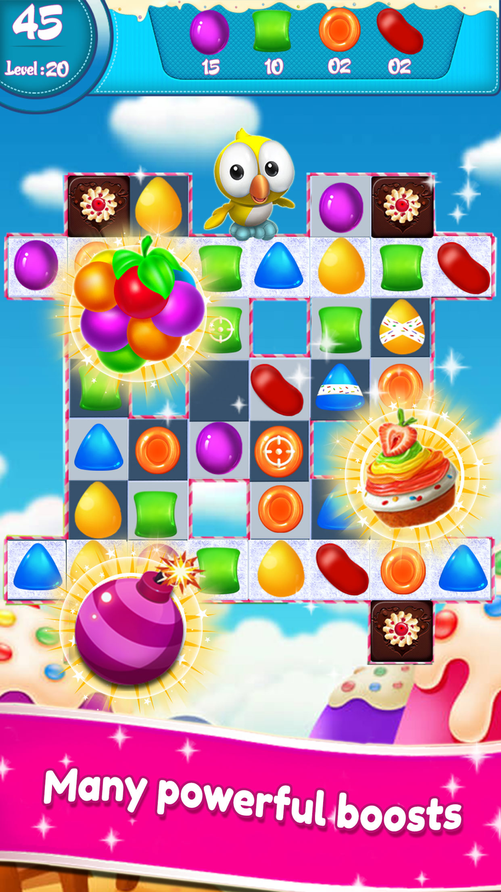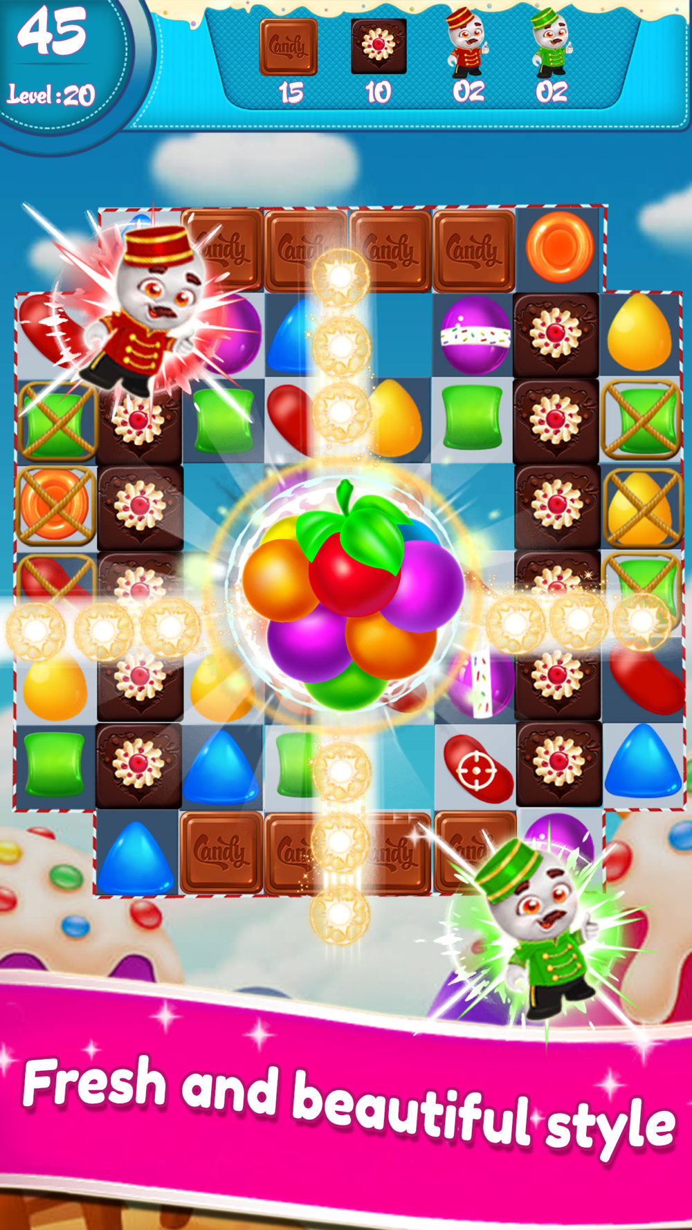 Match and collect 3 or more candies, make candy Sweet to achieve higher score.