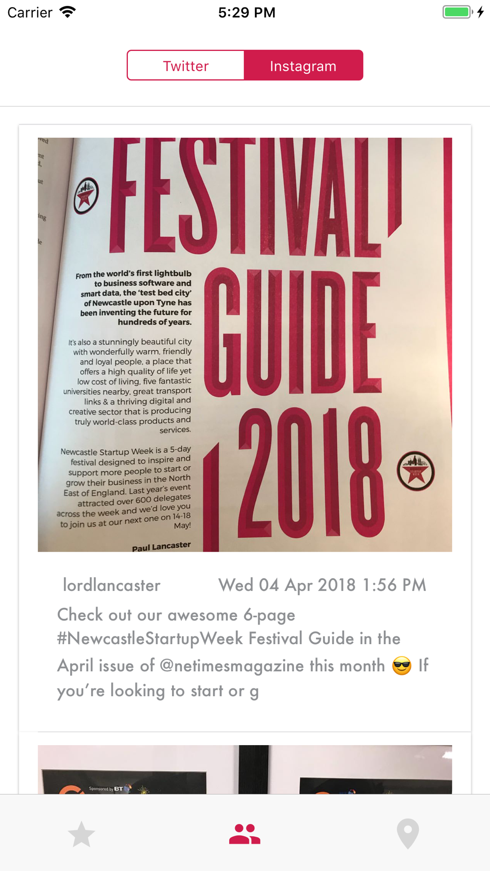 The official app for Newcastle Startup Week - a 5-day long festival of technology held in Newcastle upon Tyne. The app features a real-time updated schedule across the 5-day 5-night event, and includes a map of locations of venues around the city, along with a heat-map mapping community meetups that are going on too. You can also keep up to date with what's happening and with speakers via Twitter and Instagram integration.