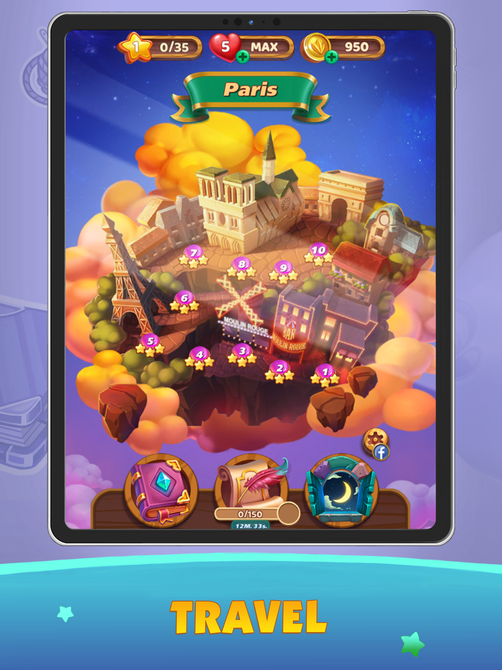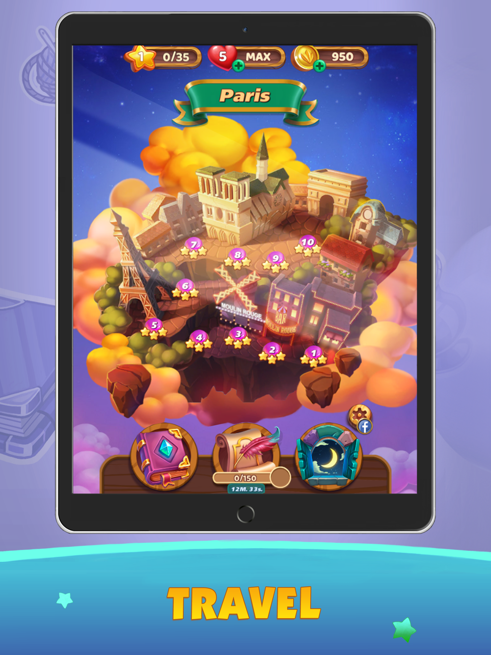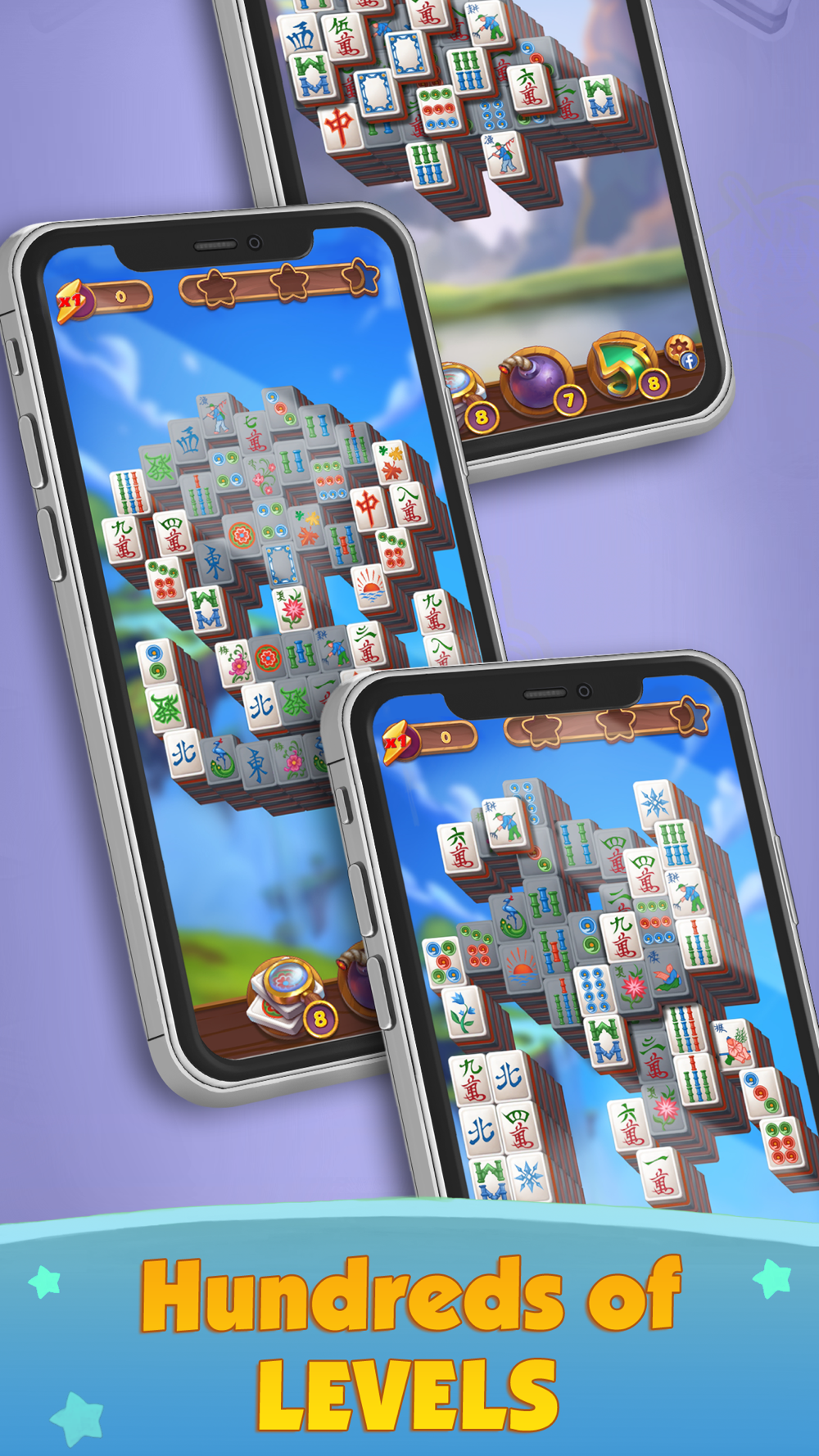 * Journey through the Mahjong Magic Islands solving fun brain teasers.