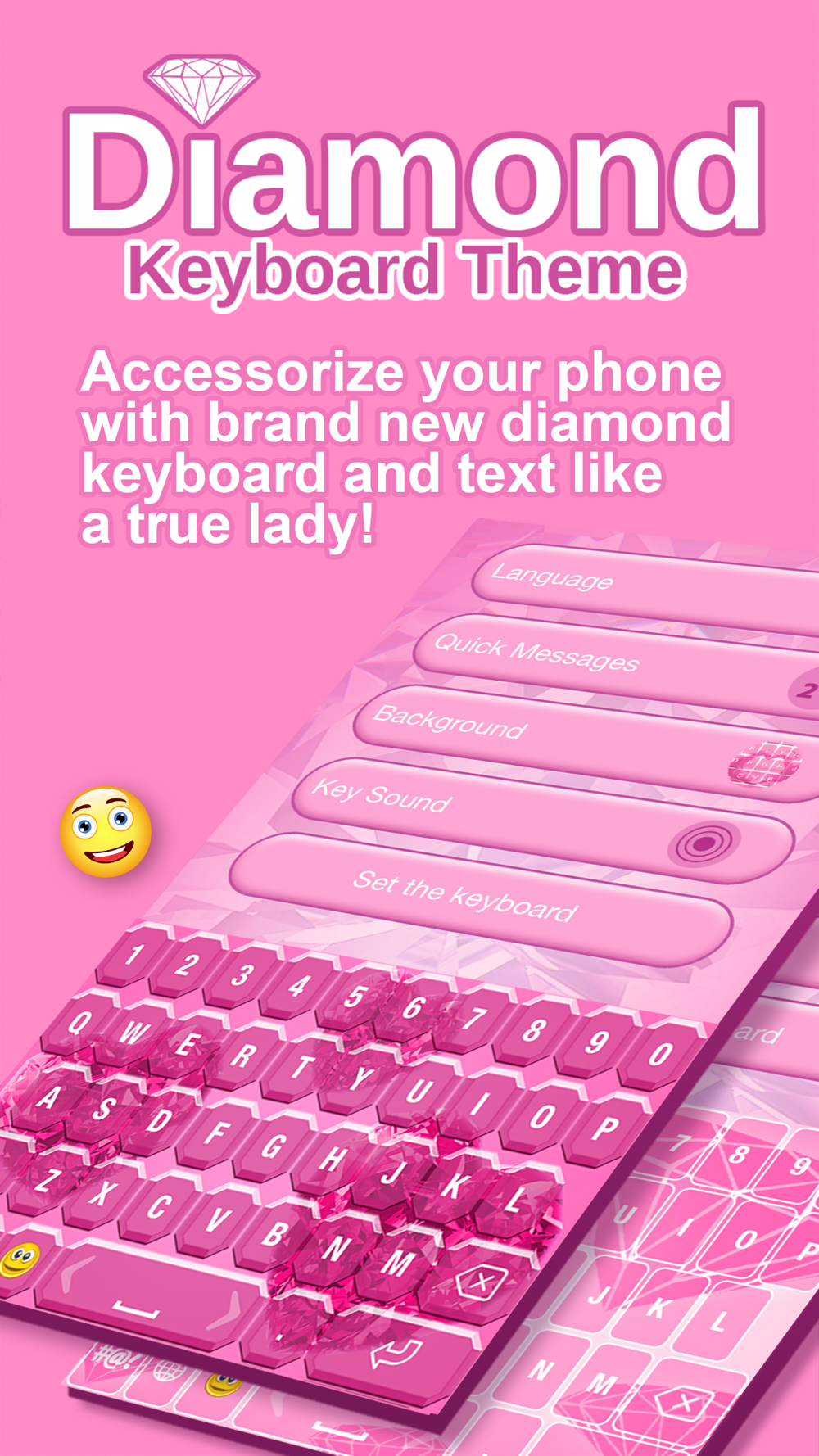 When you download the app from the app store for the first time go to Settings > Keyboard > Keyboards > Add new keyboard > from where you will select Diamond Keyboard Theme.
