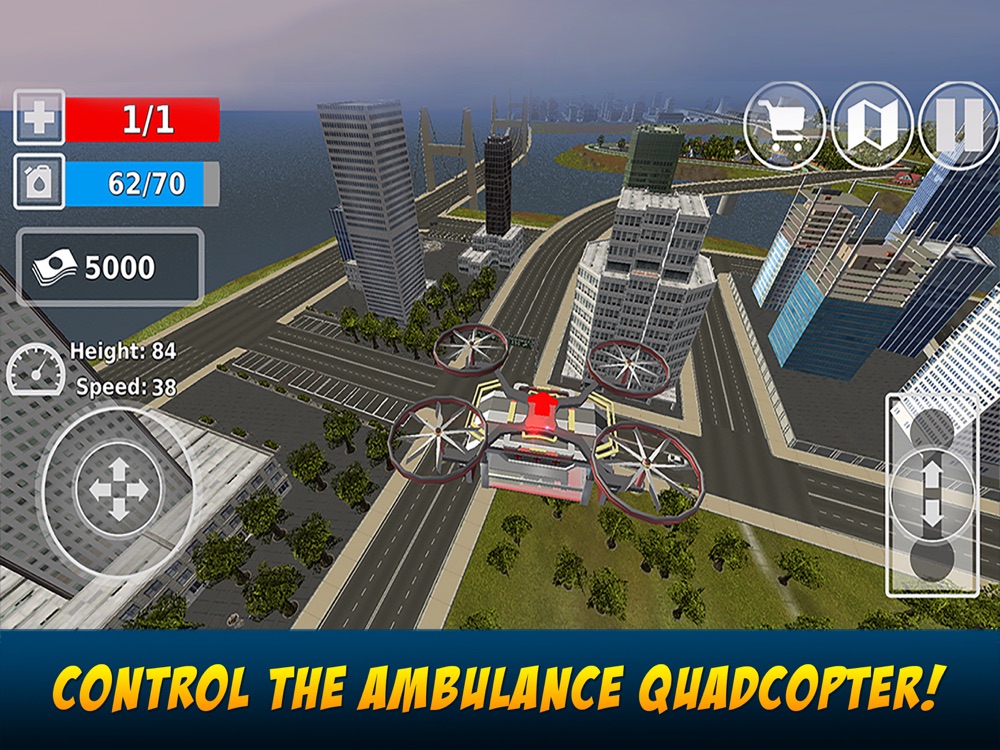 尽全力把所有的病人及时送到医院,但不要忘记你的救护车无人机能量指示器 - 如果跌倒,你会立即死机,病人死亡!尽量避免危险的情况,注意小心飞越城市,看迷你地图,只要玩救护车无人驾驶飞机模拟器!
