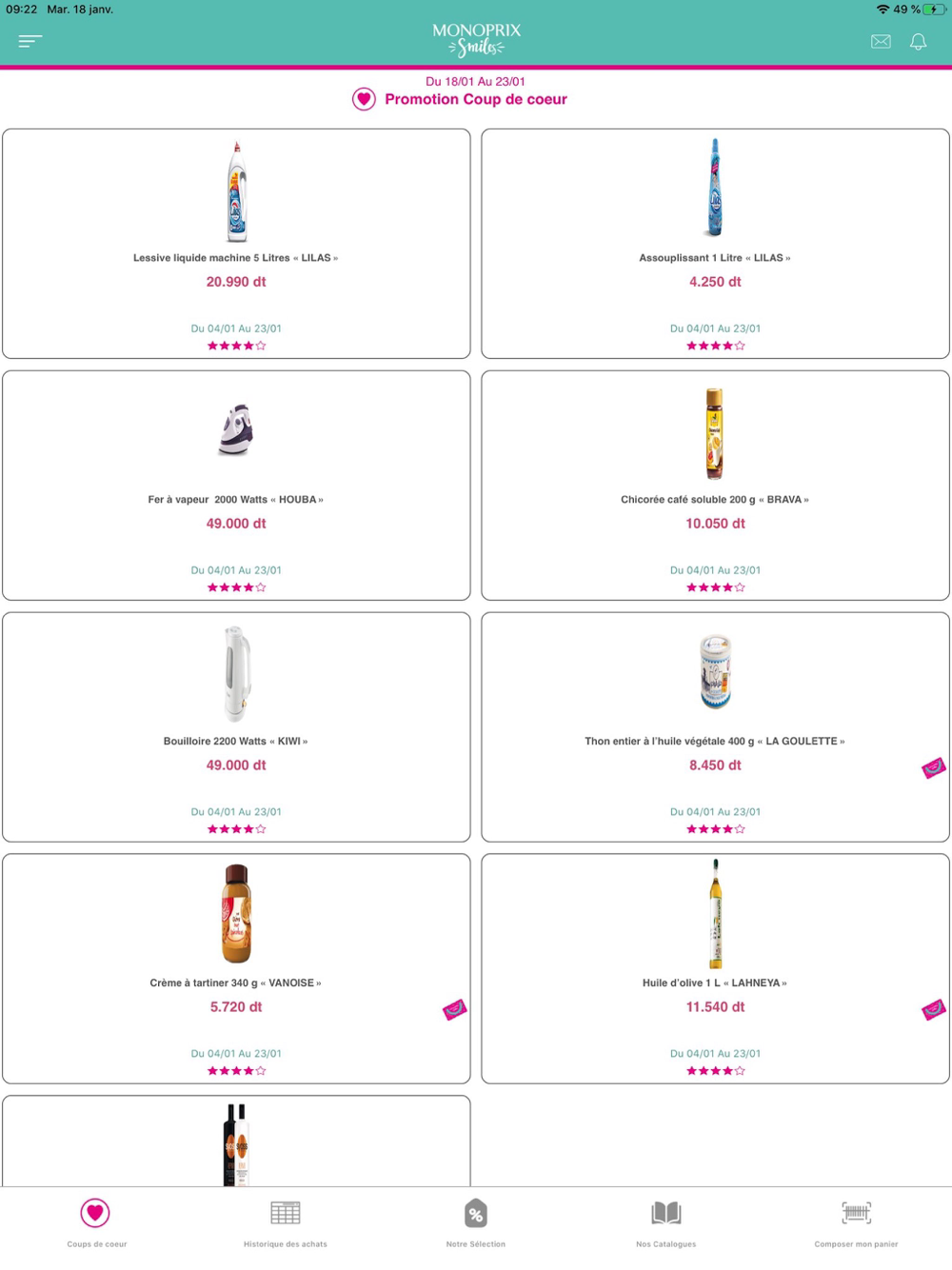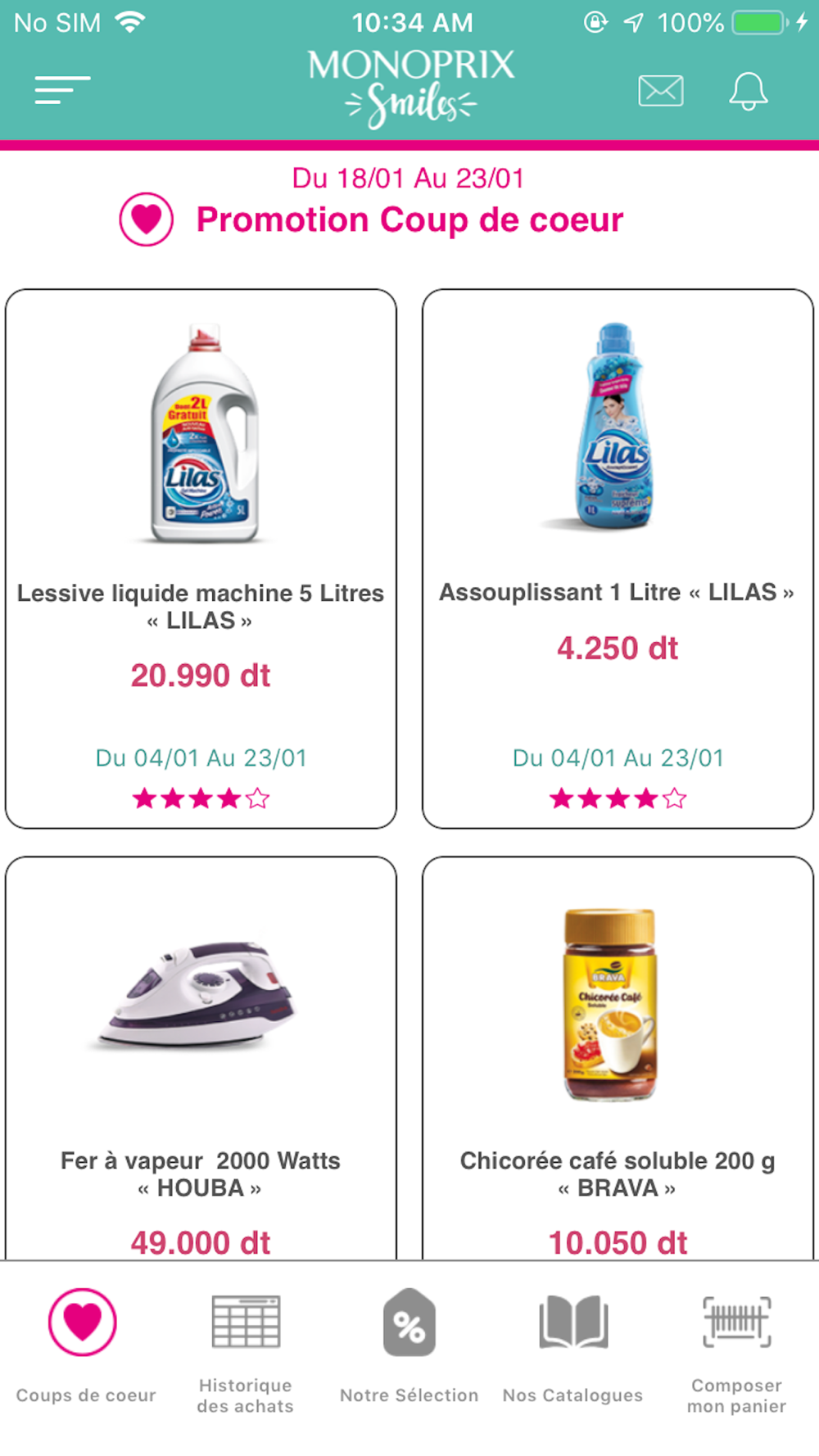 Avec l’application Monoprix Smiles vous pouvez accéder en ligne au programme de fidélité et bénéficier de tous ses avantages, tout au long de l’année Où que vous soyez, consultez vos points ainsi que le catalogue et les promos coup de cœur via votre smartphone.