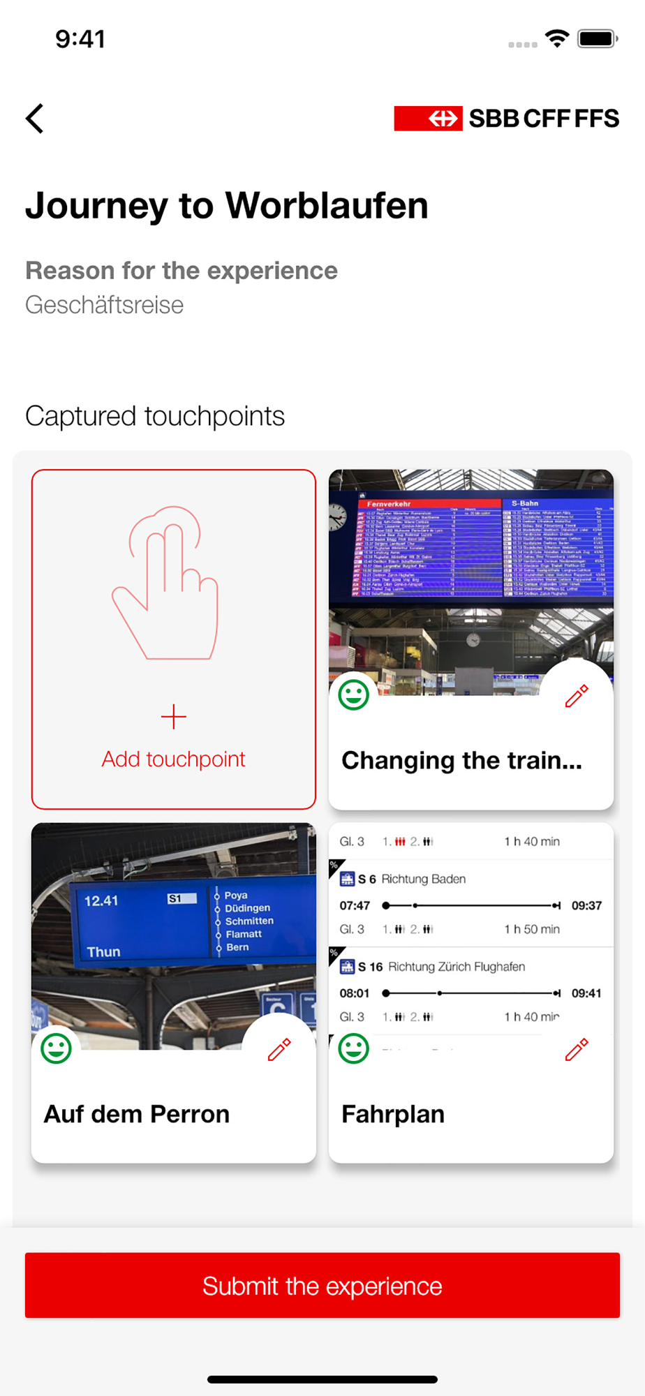 As a study participant, you can use the SBB go app to record your Customer Journey and evaluate SBB Touchpoints along your journey.