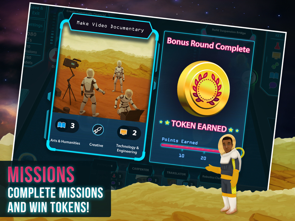 Developed as part of the Texas OnCourse educational initiative, Middle Galaxy is the first game of it’s kind. A collaboration between University of Texas, Austin, Massachusetts Institute of Technology, and the Institute for Applied Neuroscience, Middle Galaxy lets students explore a wide range of career possibilities, and the underlying knowledge and skills required for those professions, through play-based learning.