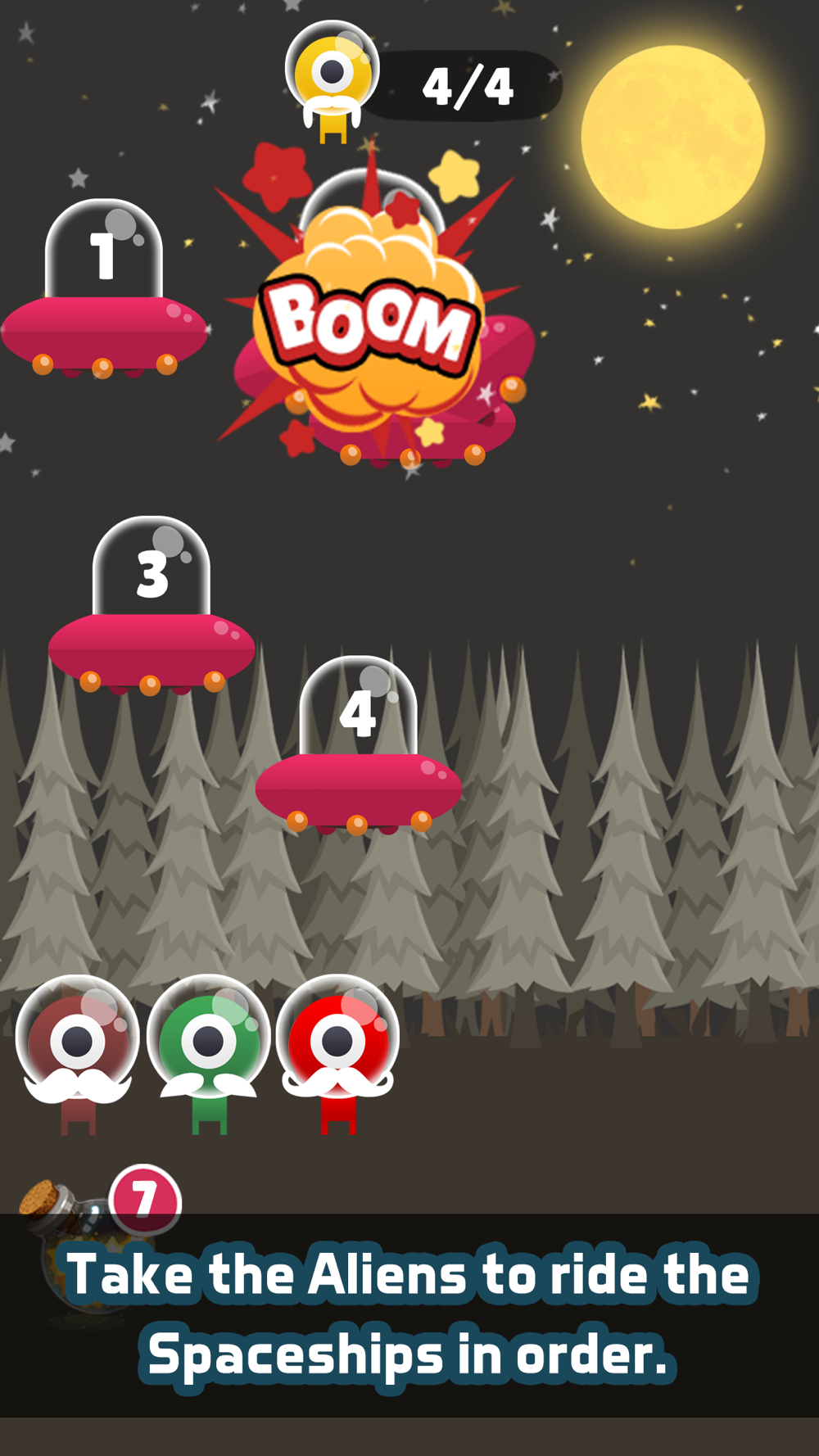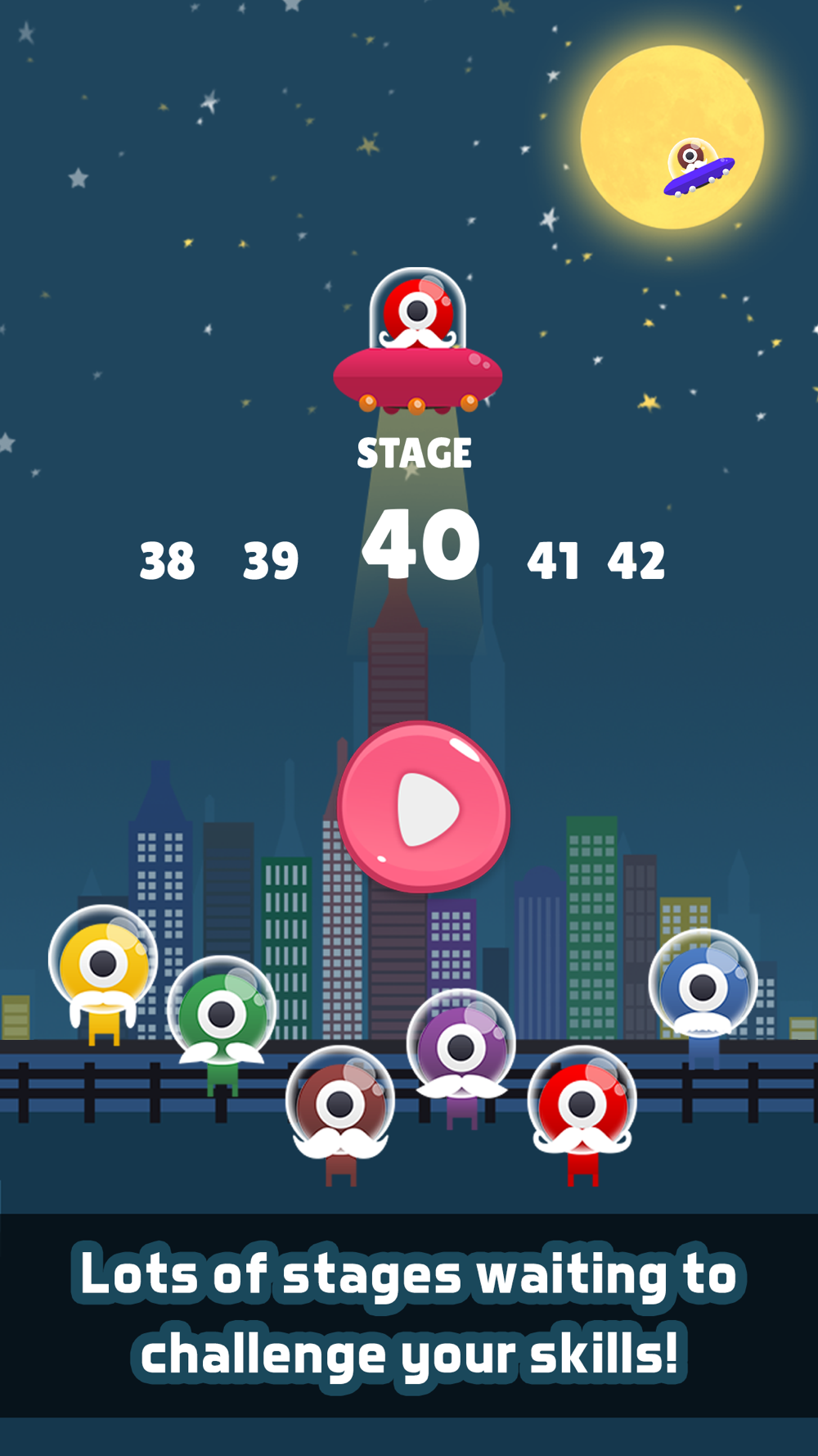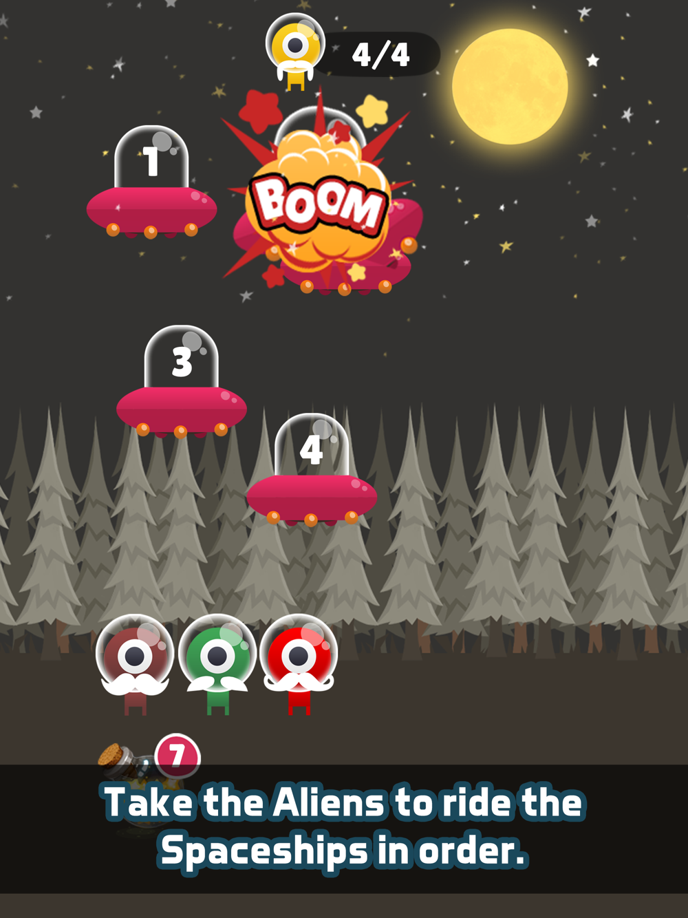 This game has variety of stages to challenge your strategy, agility and timing to help the Aliens board their spaceships. There are a variety of challenges that await you. Some stages have time limits to get the Aliens on board. Other stages require you to help the Aliens escape using specific space ships in a numbered order. If you fail to accomplish the specific stage’s task, you will have to redo the stage but practice makes perfect!