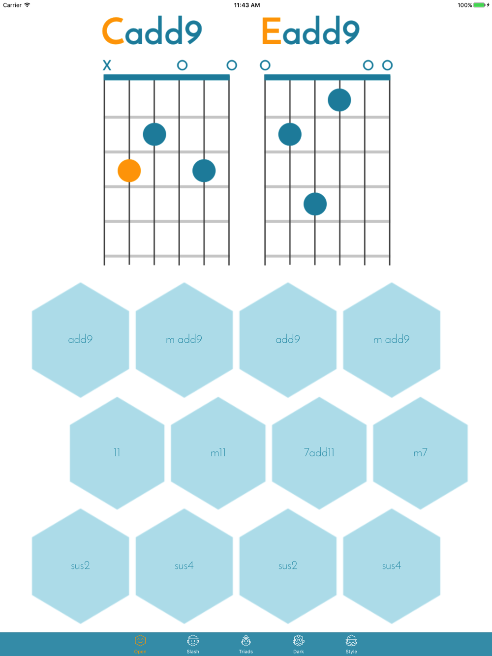 - Open: Chords that use open strings and give air to your songs. A richness and open sound to use in a multitude of musical styles.
