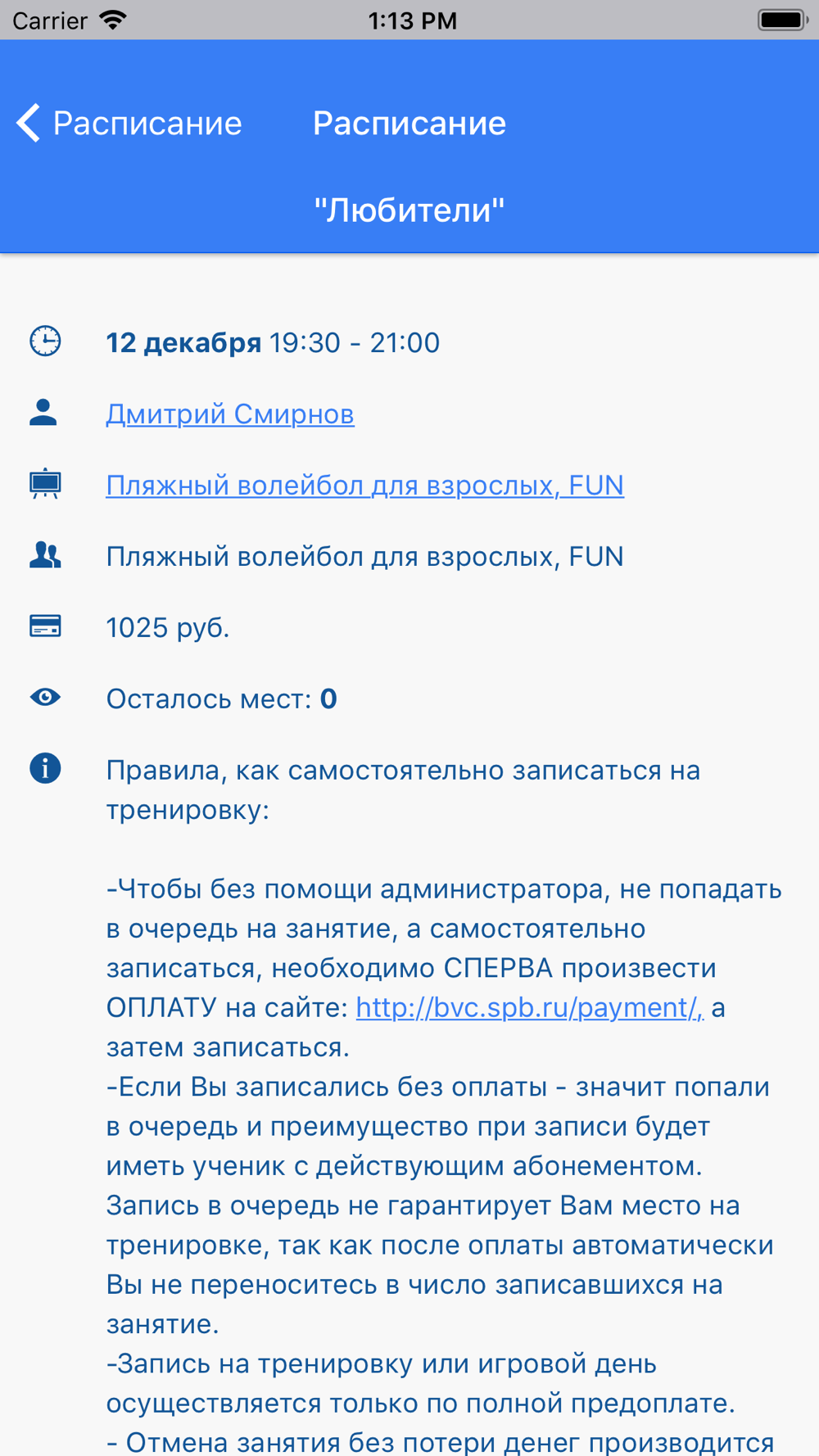 Приложение для самостоятельной записи учеников на тренировки в соответствии с расписанием академии пляжного волейбола Дмитрия Карпова. С возможностью оплаты занятий через приложение.